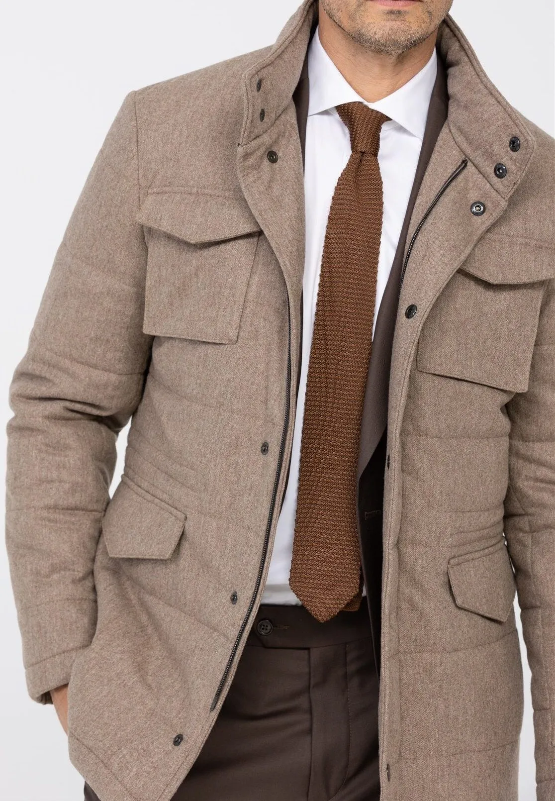 This jacket is made from fully quilted flannel. This 340-gram heavy flannel is an exceptional fabric that combines comfort and elegance. With its substantial weight, this flannel offers unrivalled warmth and softness, perfect for the cooler seasons. Whether for a formal or casual occasion, this heavyweight flannel is the perfect choice for sophisticated style and optimum comfort.