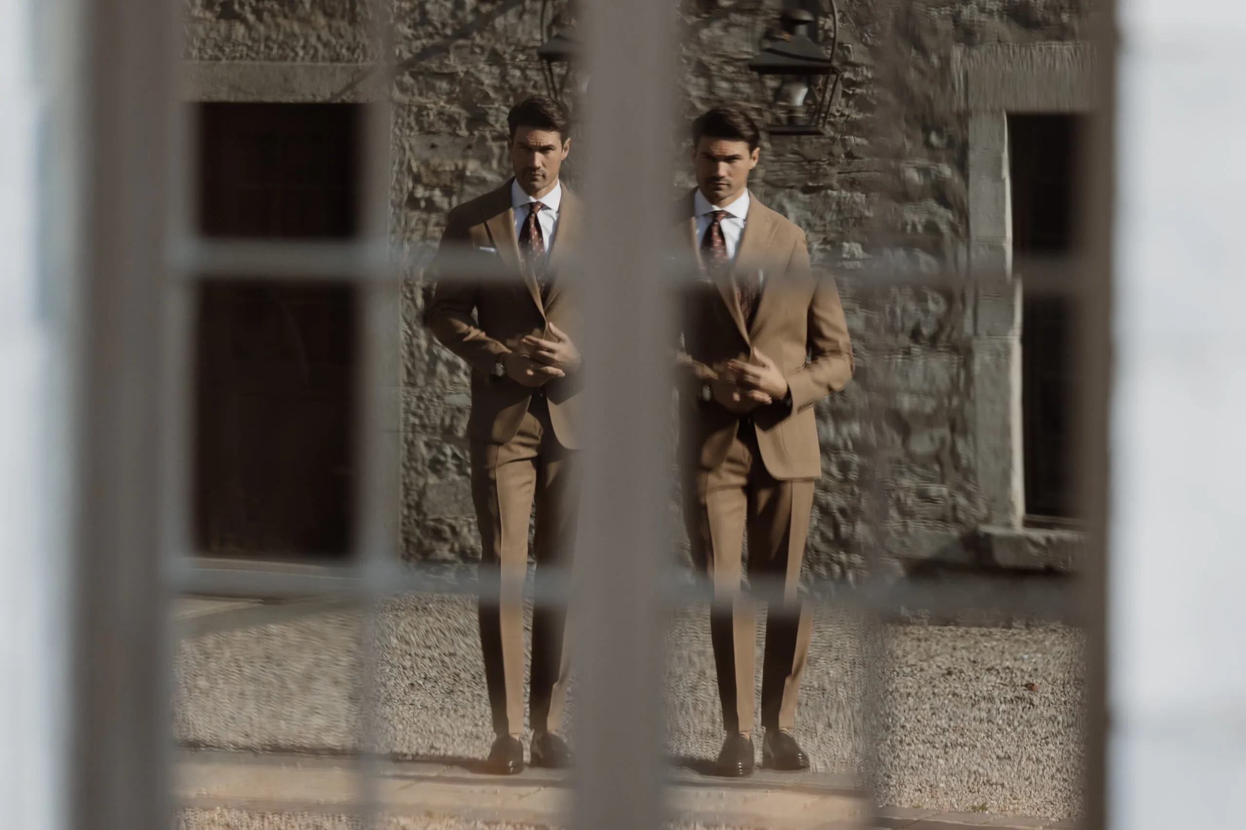 Discover the brown 2-piece suit from every angle. The light brown color will make your business ensemble fresh and trendy.