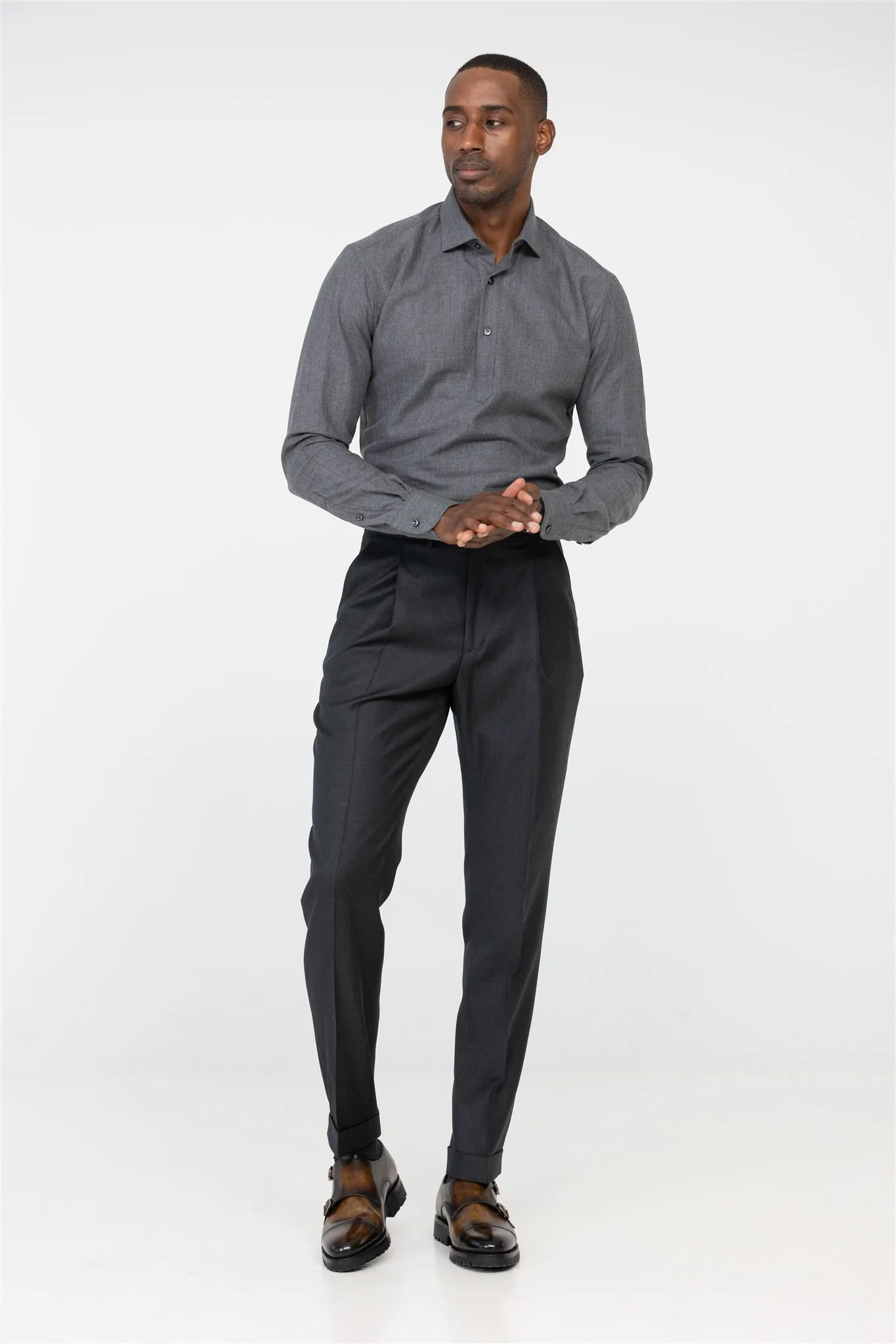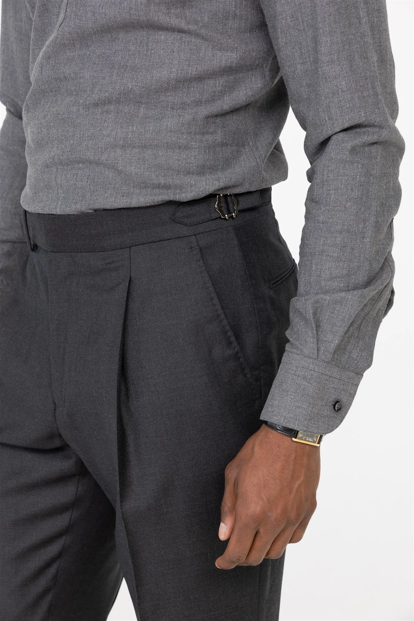 CHARCOAL GRAY PLEATED TWILL PANTS