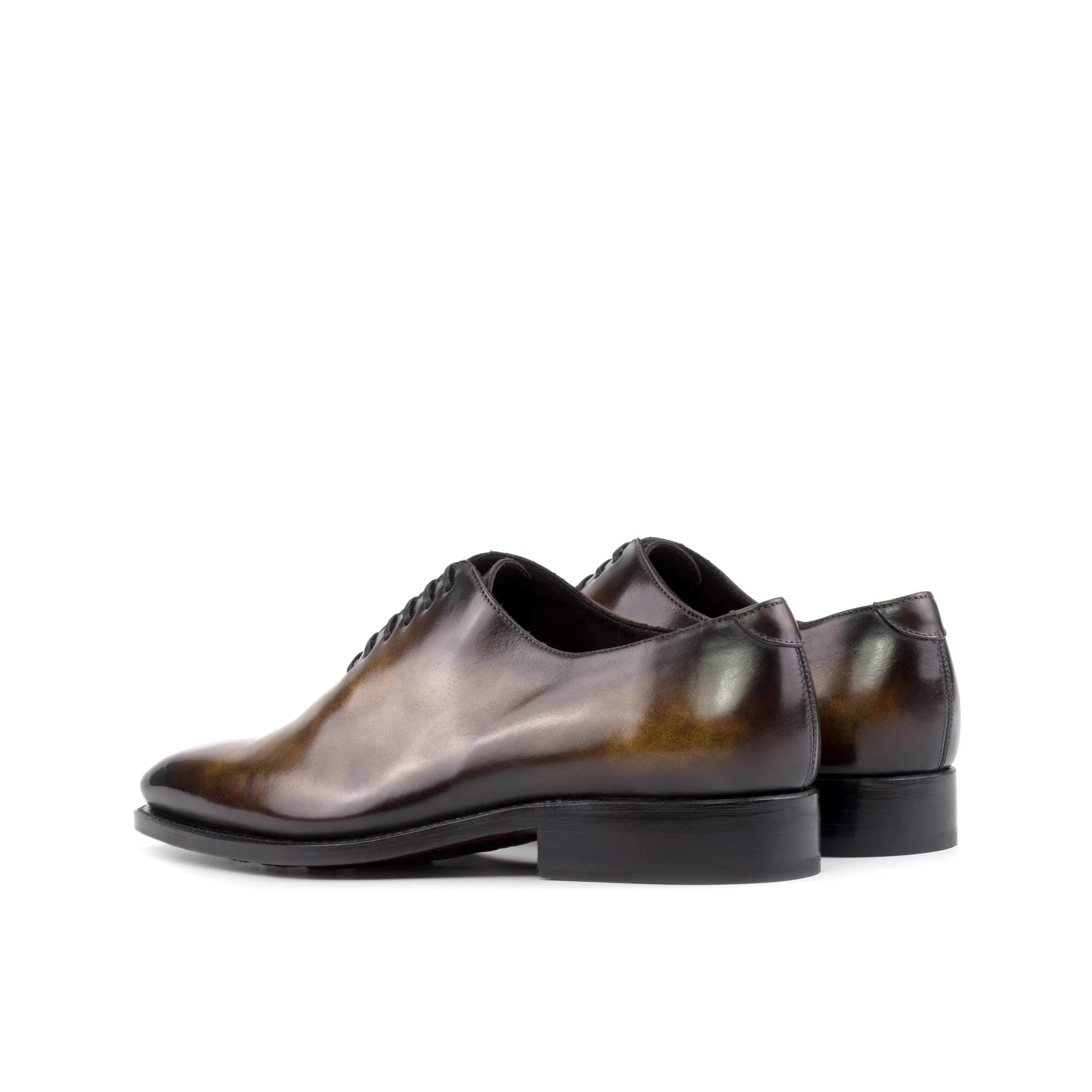 The color of this pair of shoes is a dark brown patina. It’s a traditional and versatile color. The shoe is hand-painted, giving the final color a beautiful sheen and depth.