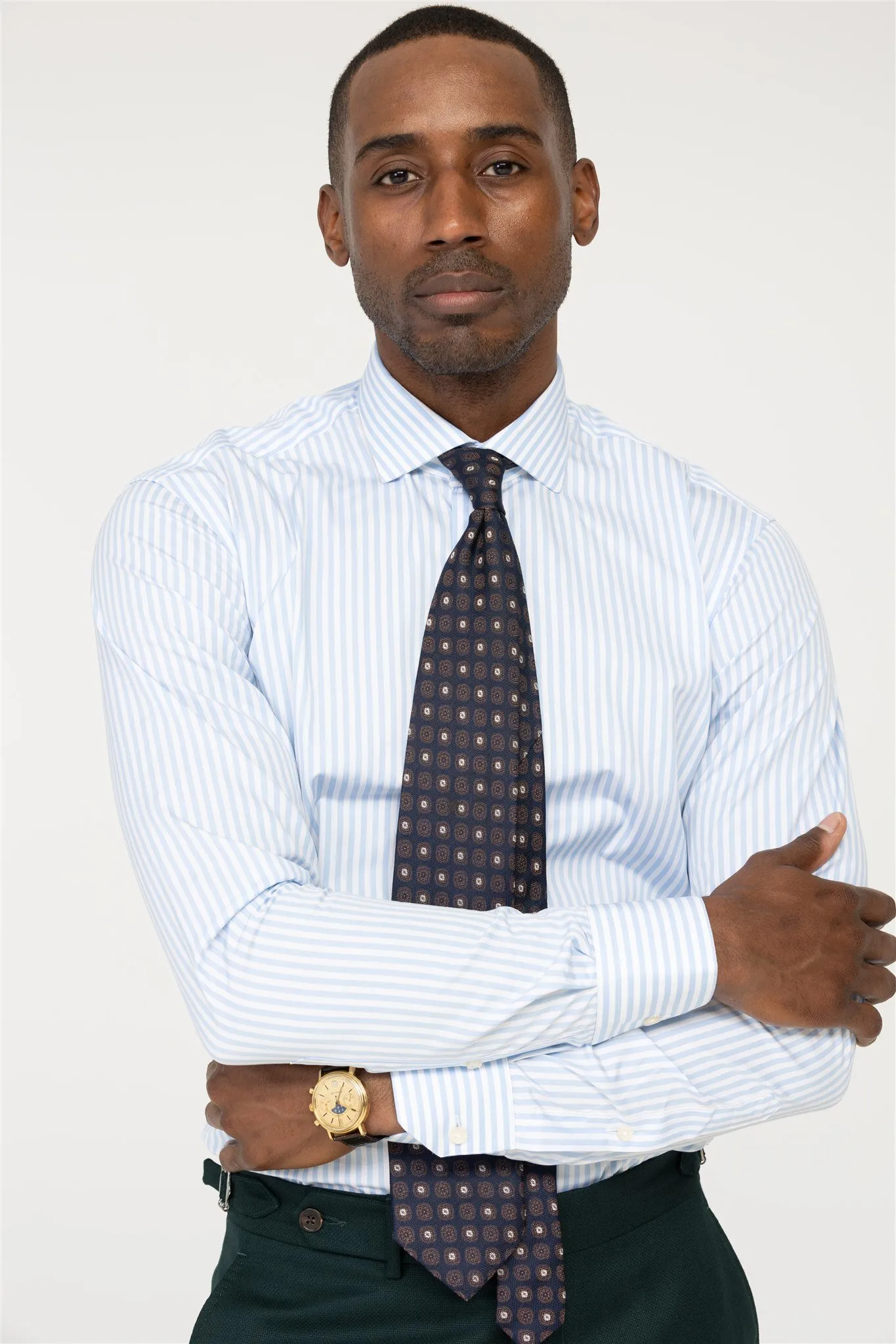 El cuello italiano es versátil y adecuado para una gran variedad de ocasiones, ya sea para el trabajo, eventos formales u ocasiones informales. La altura de 7,5 cm es el equilibrio justo, ya que proporciona una elegancia clásica sin resultar demasiado imponente. El cuello italiano tiene un escote ligeramente más ancho y las puntas más separadas, lo que le confiere un aspecto moderno y sofisticado. Combina bien con una gran variedad de corbatas y permite una presentación pulcra del lazo. El cuello rígido añade una estructura adicional al cuello, lo que le permite permanecer en su sitio durante todo el día. Suele preferirse para ocasiones formales, reuniones de negocios o eventos especiales.