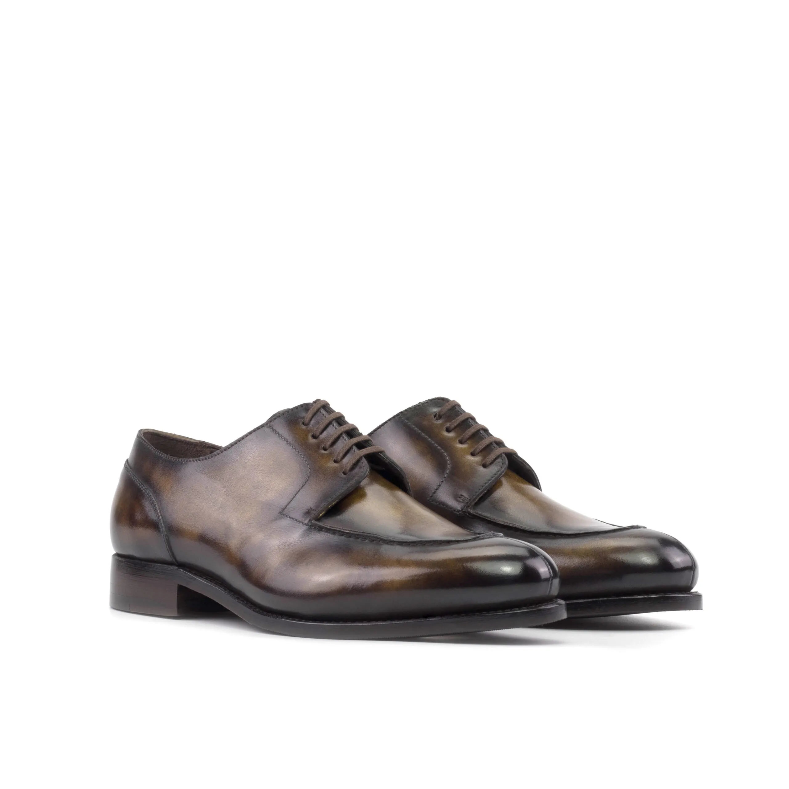 El color de este par de zapatos es un marrón tabaco, con una pátina artesanal aplicada una vez montado el zapato. Este proceso de pátina puede llevar hasta 10 horas de trabajo del artesano.