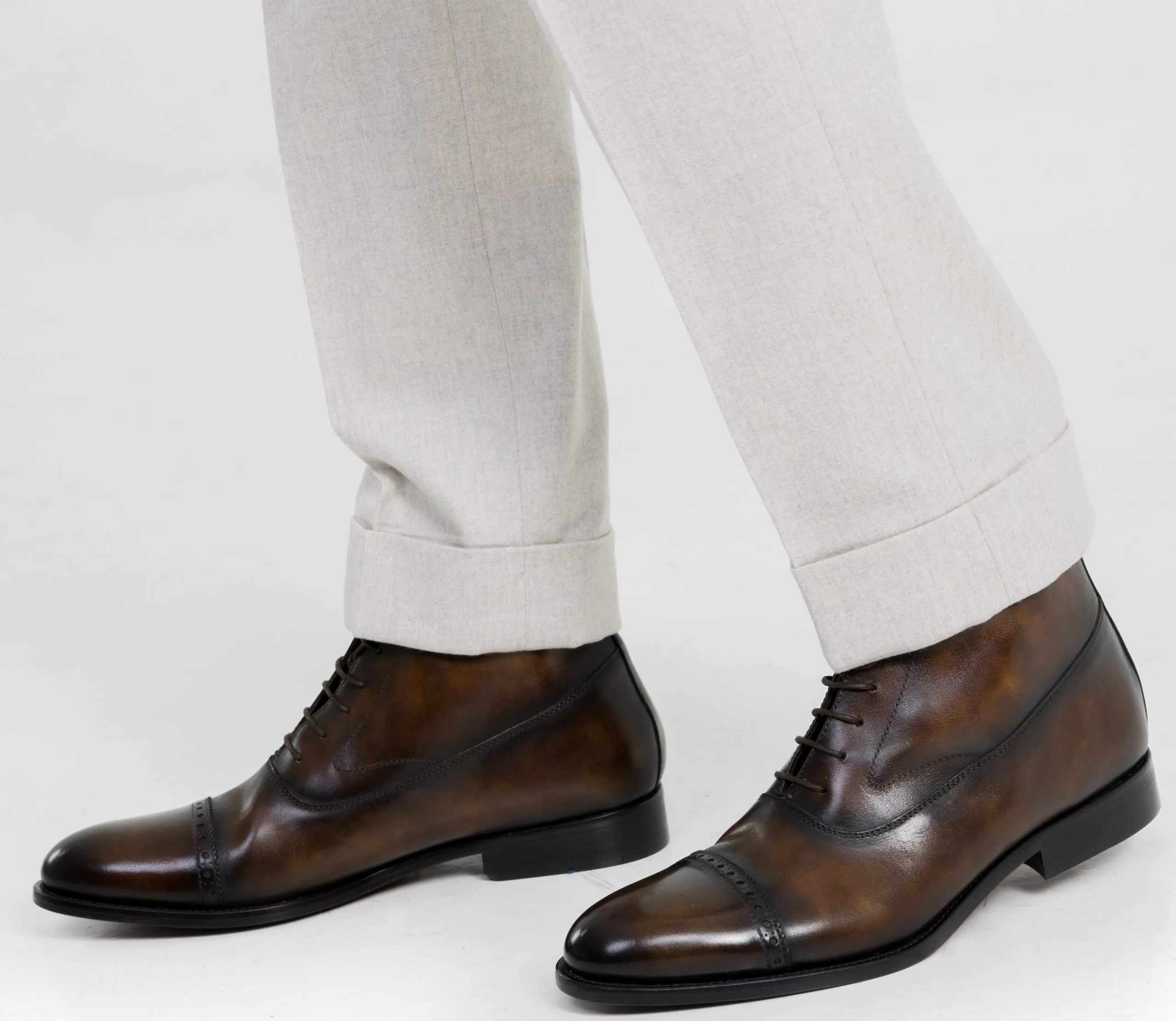 El pliegue único en el exterior es un detalle sutil que añade comodidad y soltura al pantalón. Ensancha ligeramente el muslo, proporcionando una mayor libertad de movimiento y manteniendo al mismo tiempo una línea elegante. Este tipo de pliegue es especialmente adecuado para los hombres que buscan unos pantalones cómodos sin renunciar al estilo.