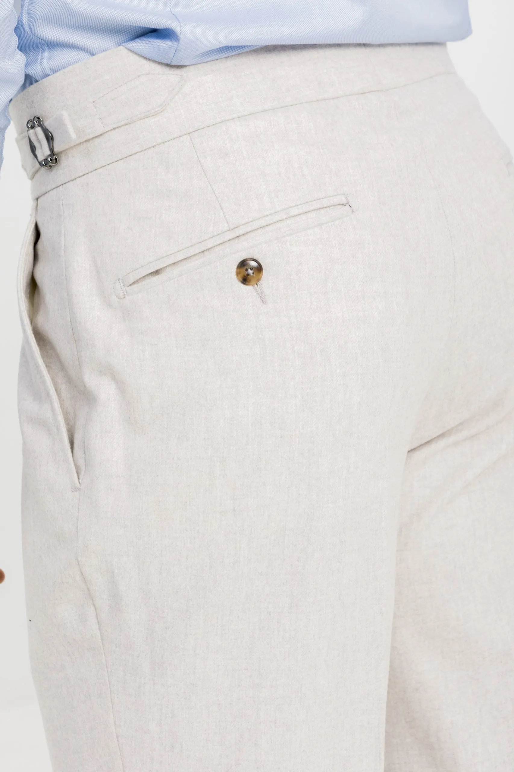 Estos pantalones están confeccionados en franela 100% lana, un tejido apreciado por su tacto suave y su calidez natural. La franela se reconoce por su superficie ligeramente esponjosa, obtenida mediante un delicado proceso de raspado que acentúa su comodidad. Este tratamiento confiere al tejido un tacto flexible y envolvente, al tiempo que mantiene un buen ajuste. Menos formal que una sábana clásica, pero más refinada que un tejido deportivo, la franela es una excelente elección para el otoño y el invierno: aísla bien del frío sin dejar de ser transpirable y agradable de llevar a diario.