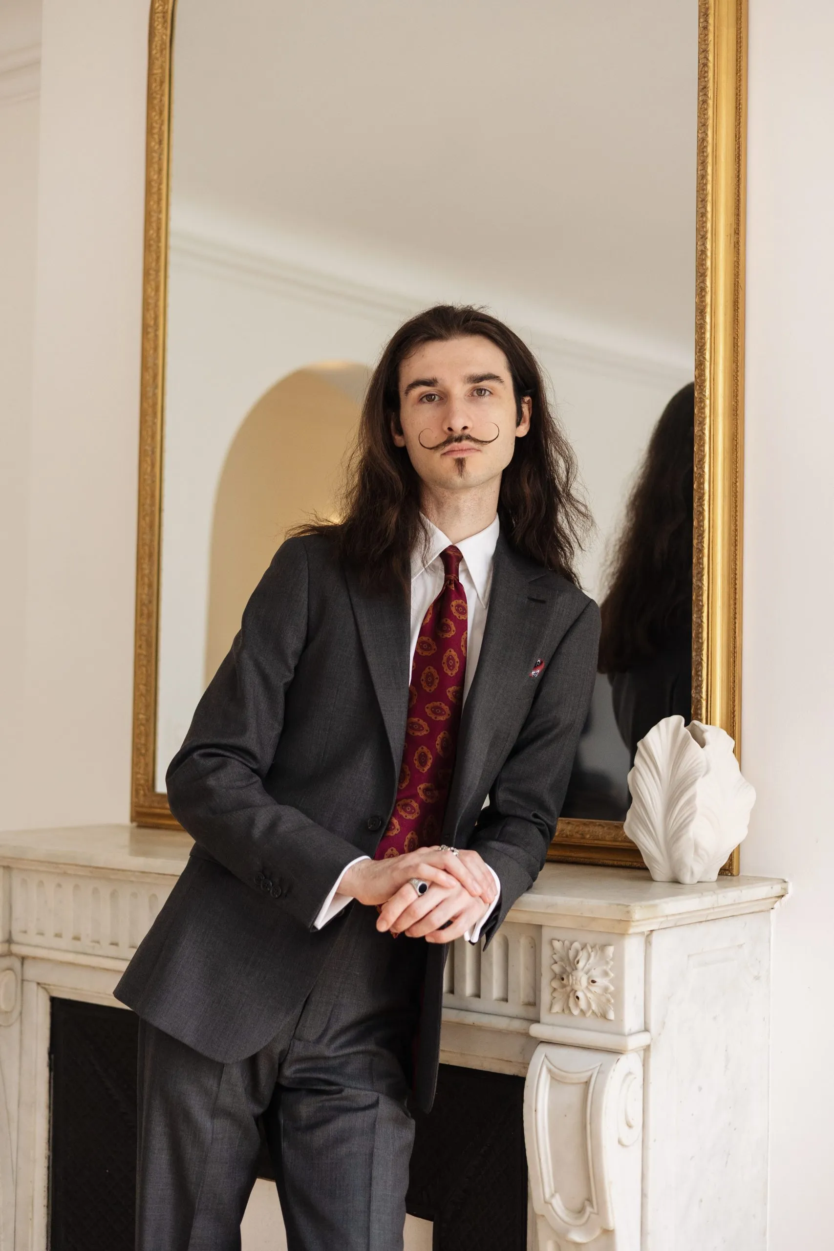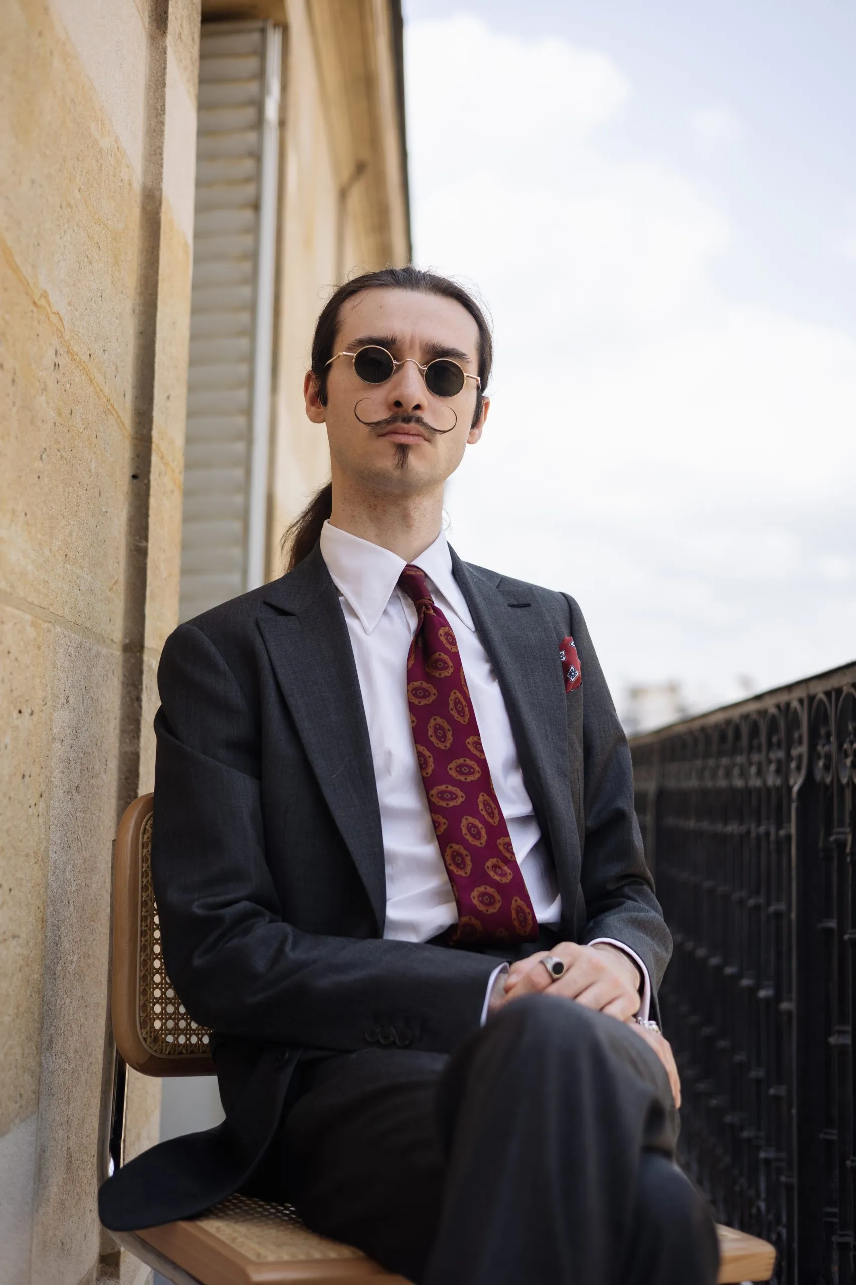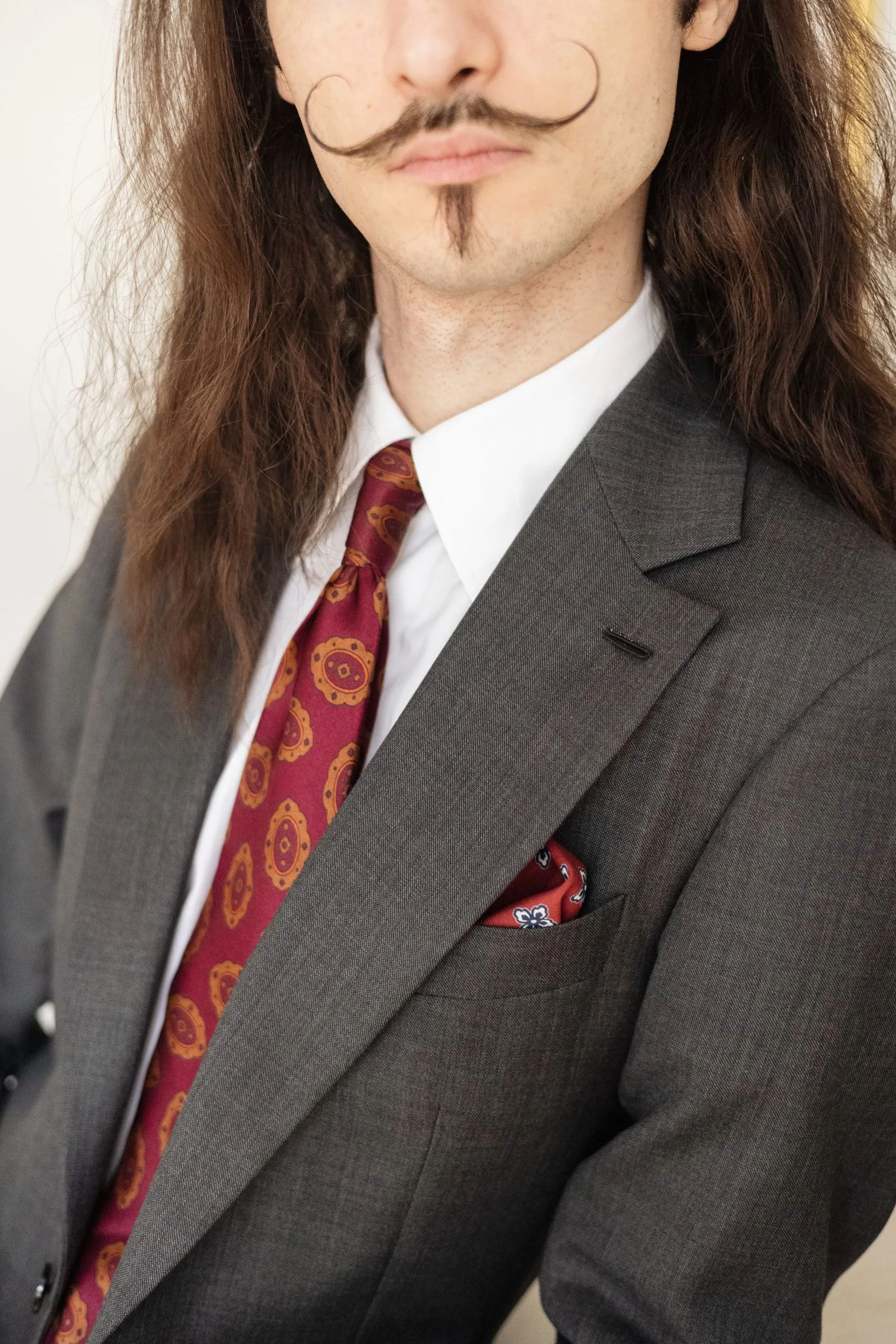 La solapa está adornada con un ojal milanés hecho a mano, testimonio del cuidado puesto en los acabados.