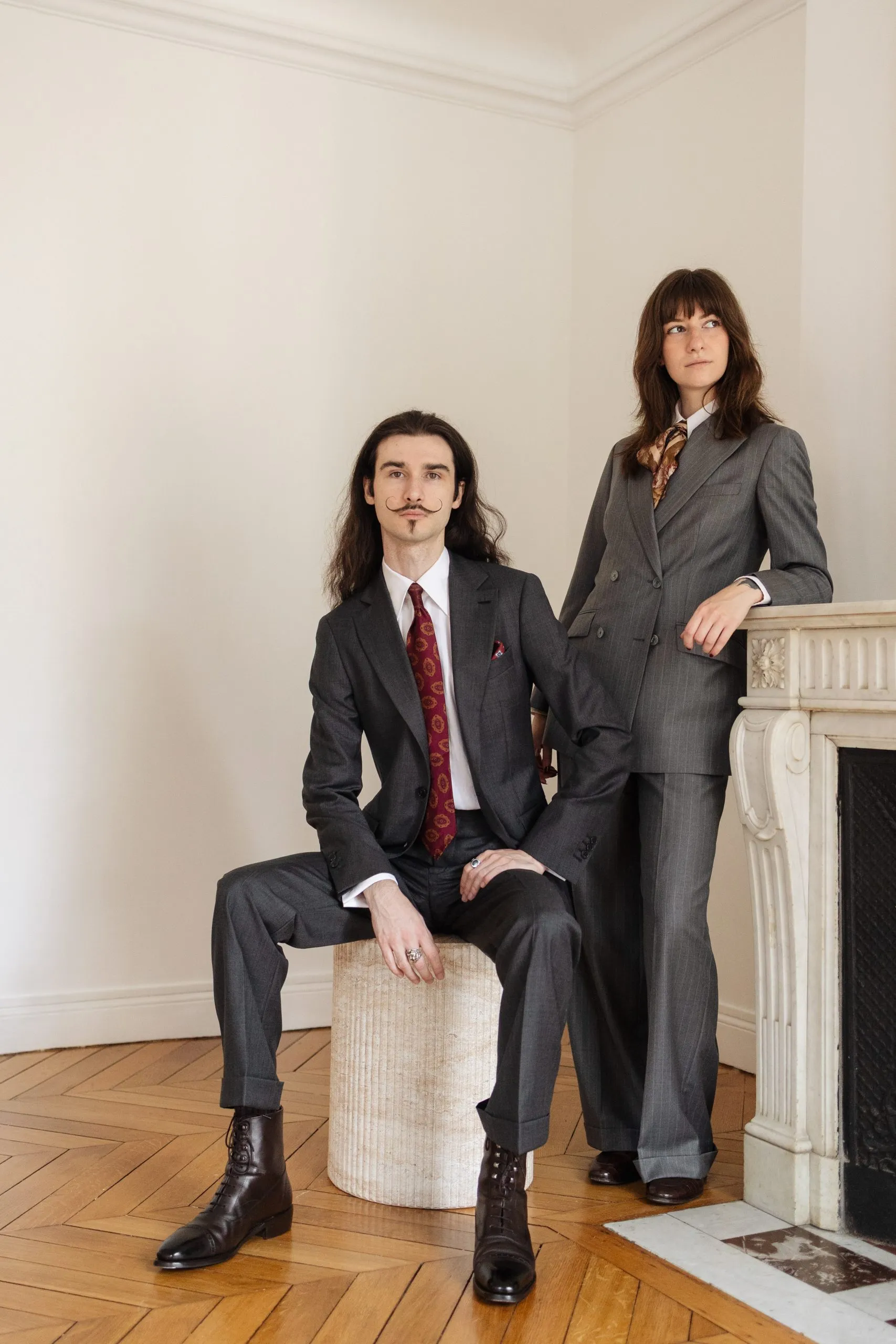 Tienen un tiro de 6 cm, bolsillos italianos inclinados delante y dos bolsillos ribeteados abotonados detrás.