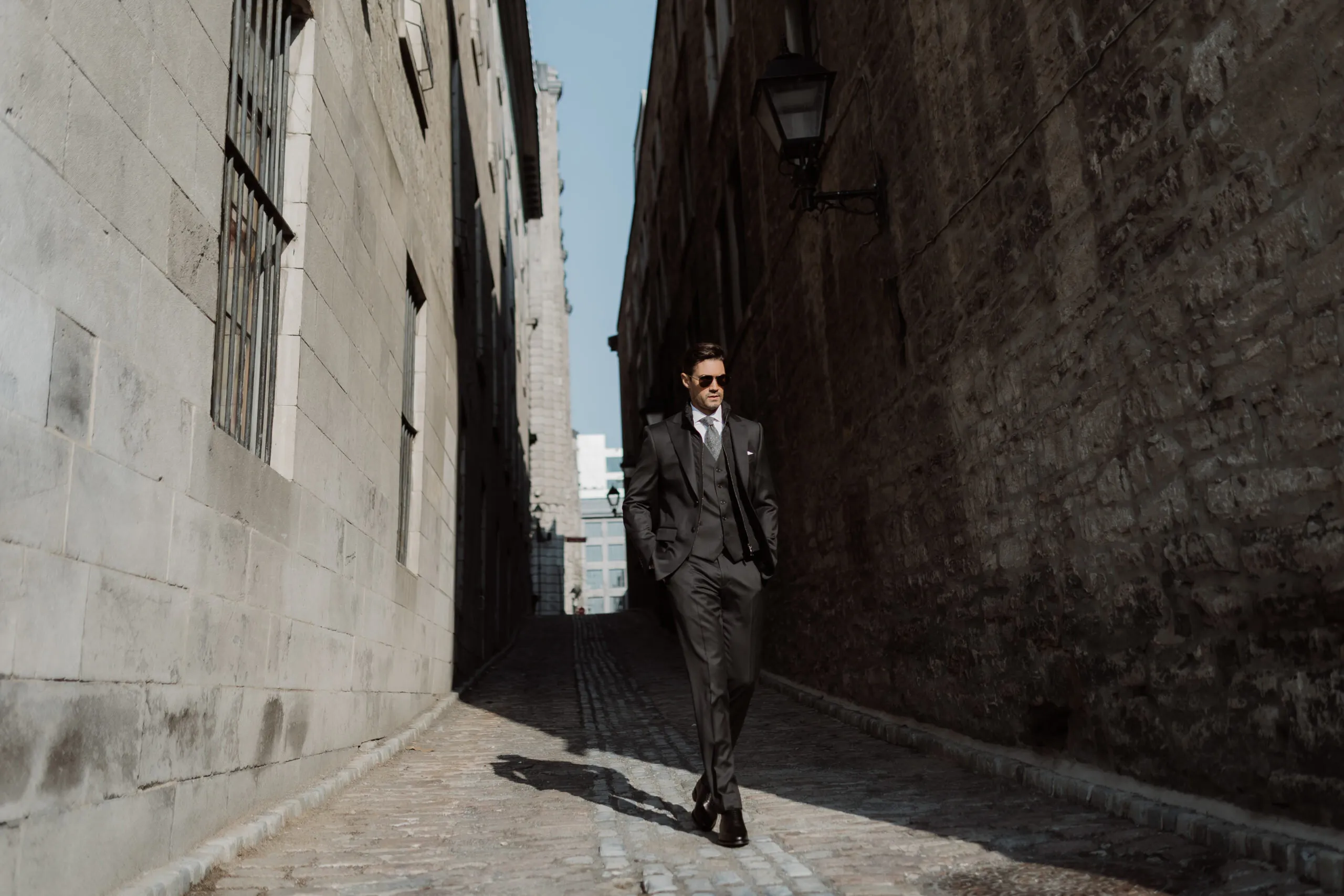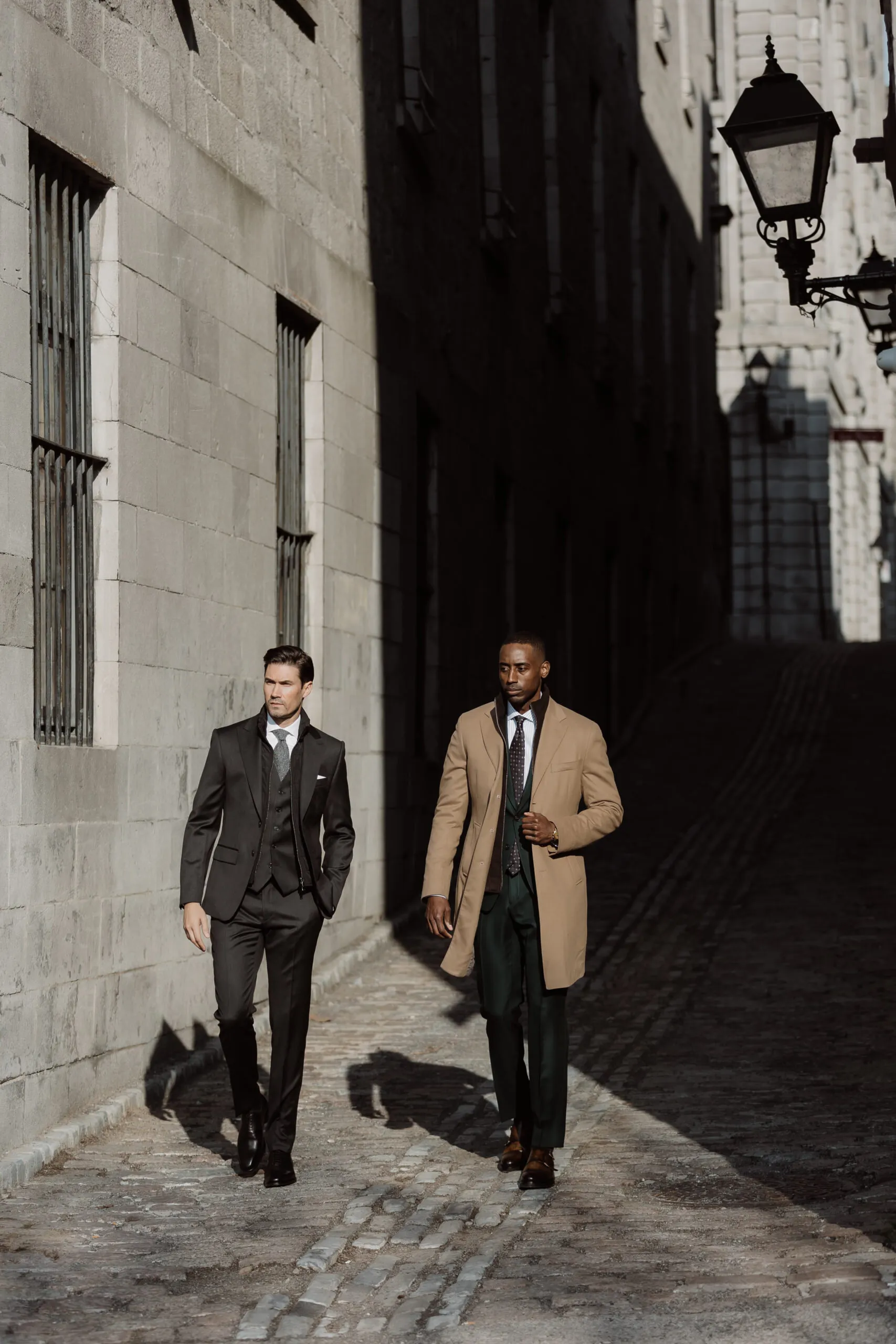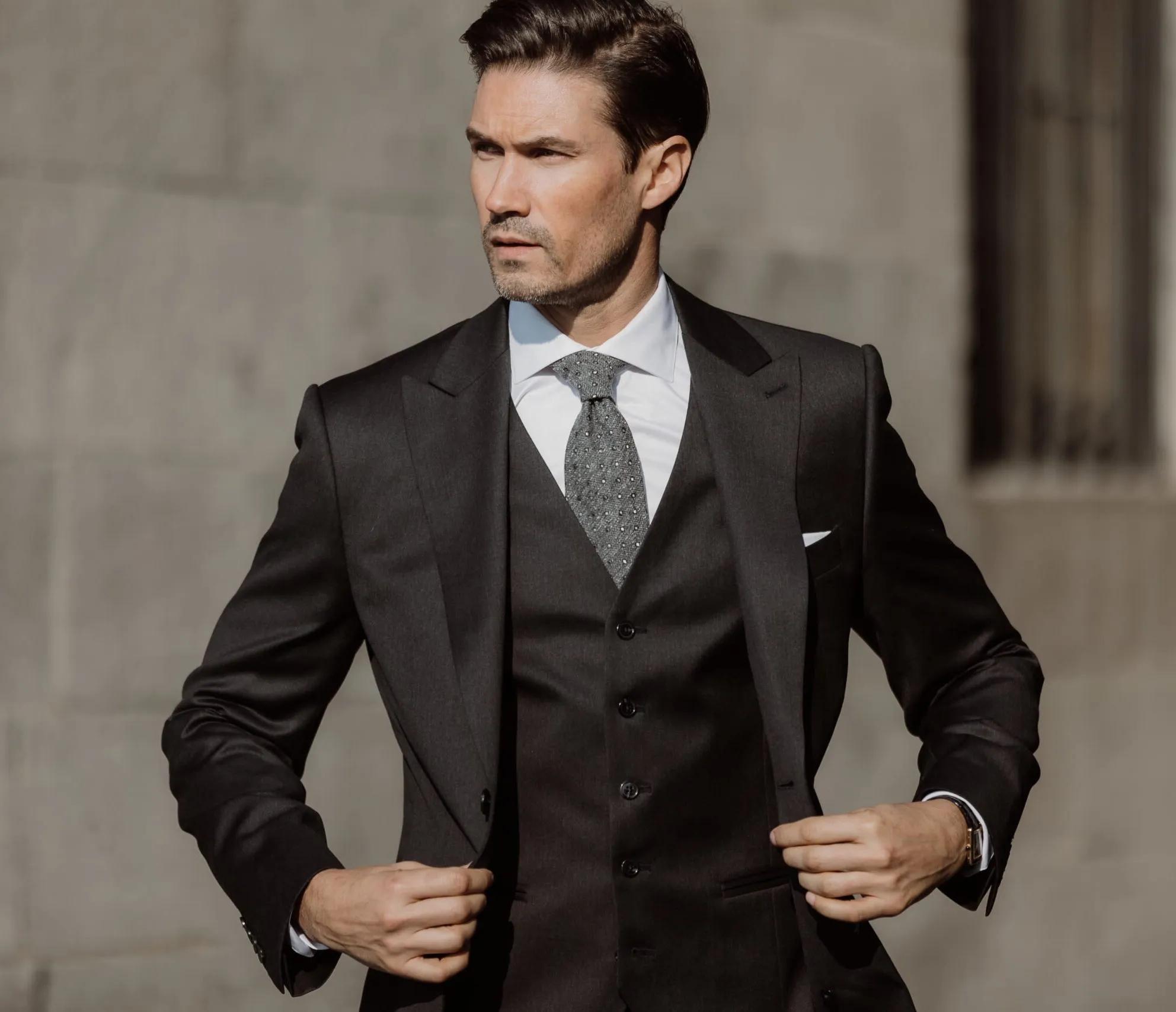 Nuestro traje a medida de 3 piezas es perfecto para el trabajo diario. La eficacia del color gris con el chaleco desmontable hace que sea un traje atemporal, adaptable y con estilo.