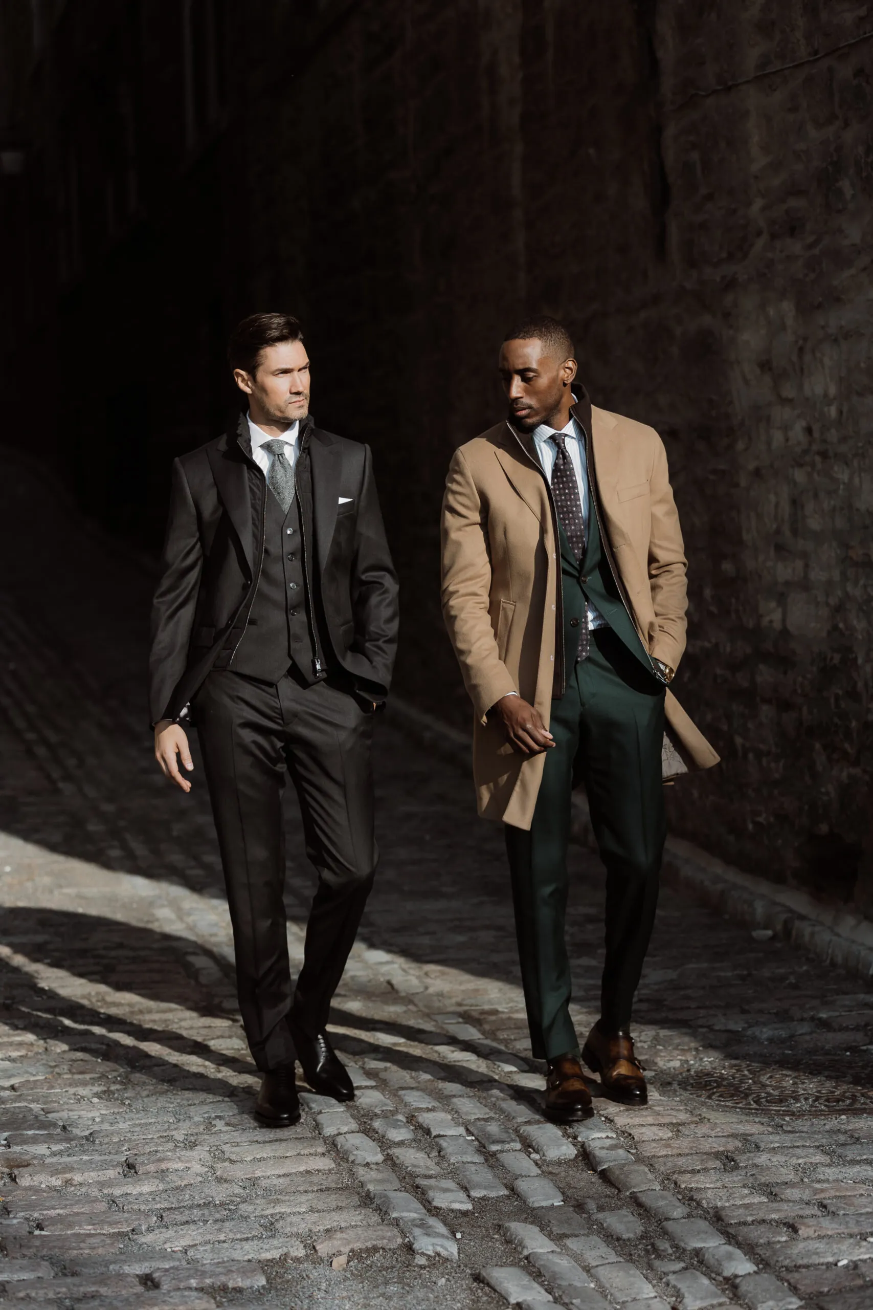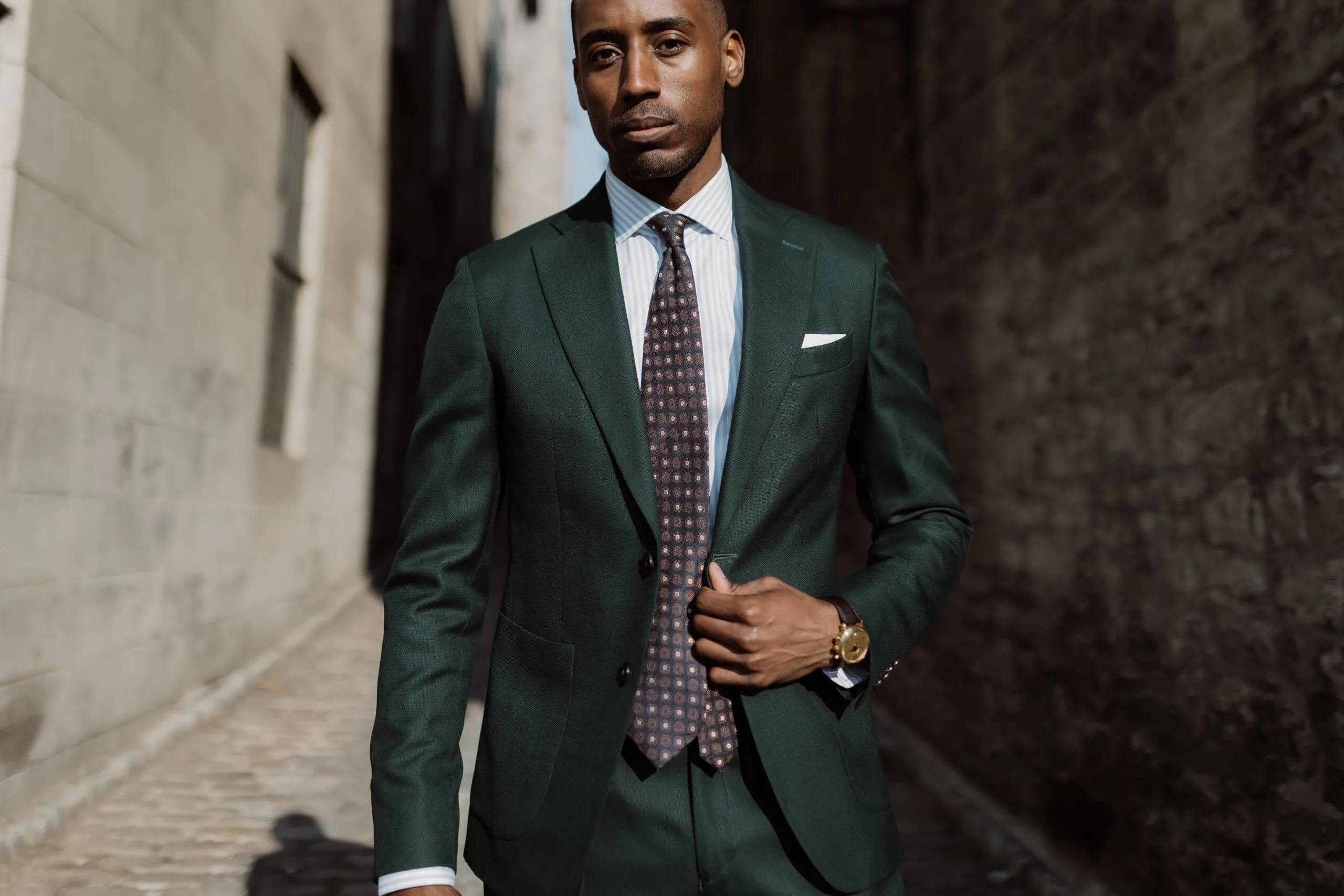 Nuestro traje verde a medida de 2 piezas es ideal para el día a día en el trabajo o para eventos especiales. El atrevido color verde confiere a este traje una individualidad y un refinamiento inigualables.
