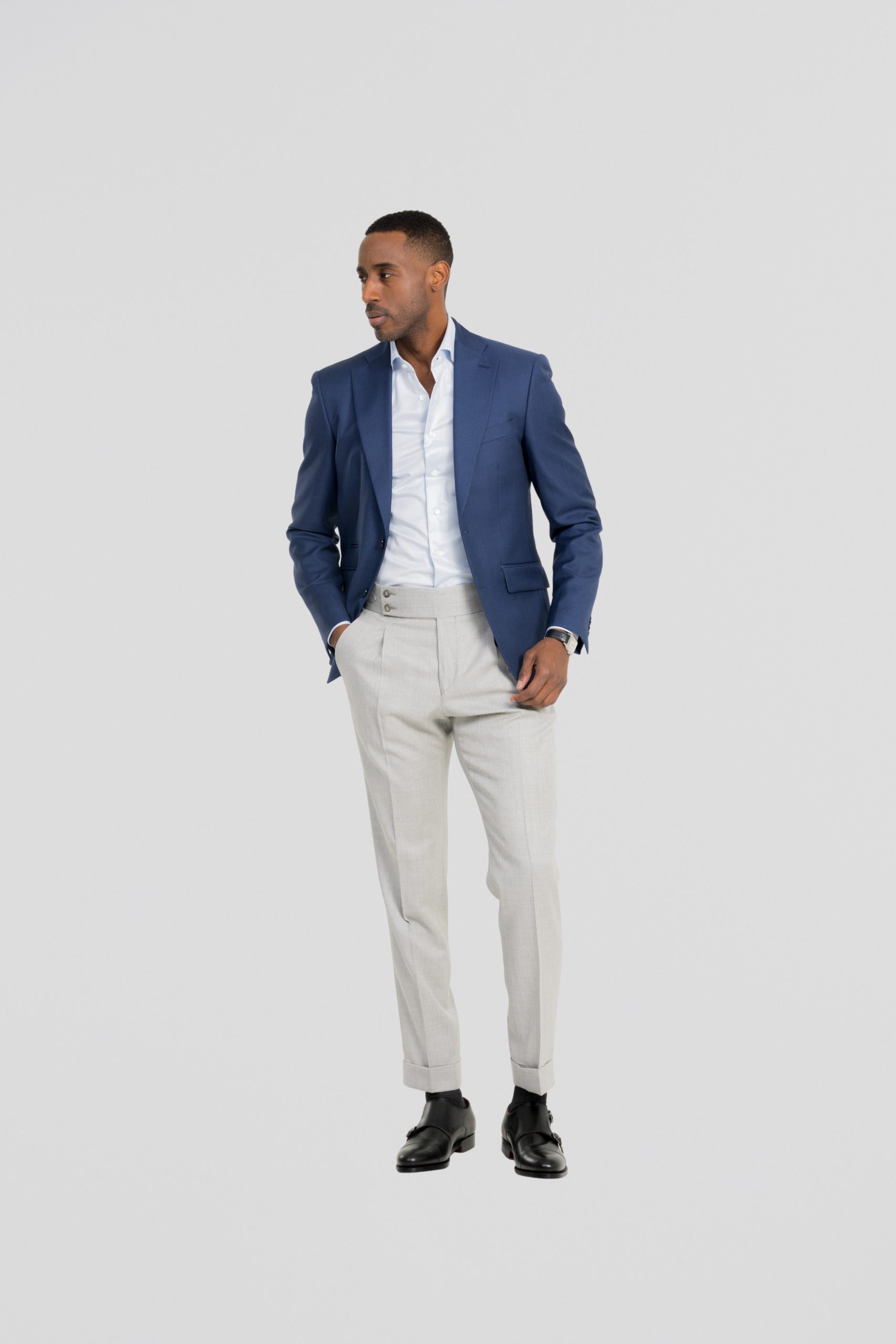 Avec une chemise bleu ciel ou même un polo fin, le rendu devient naturellement plus décontracté, sans jamais perdre en tenue.