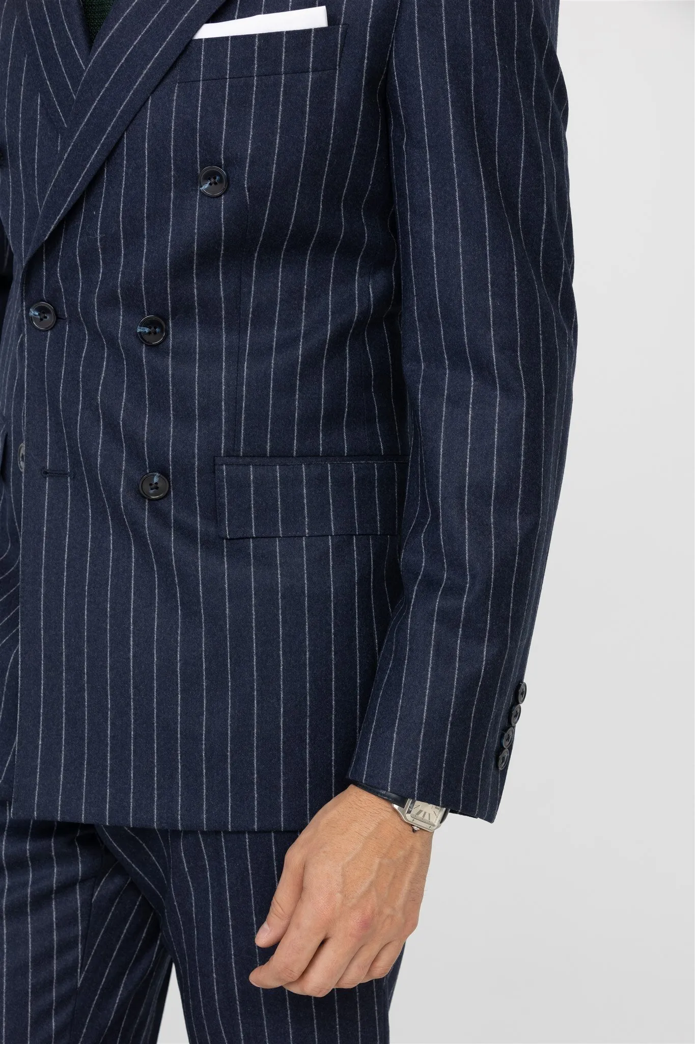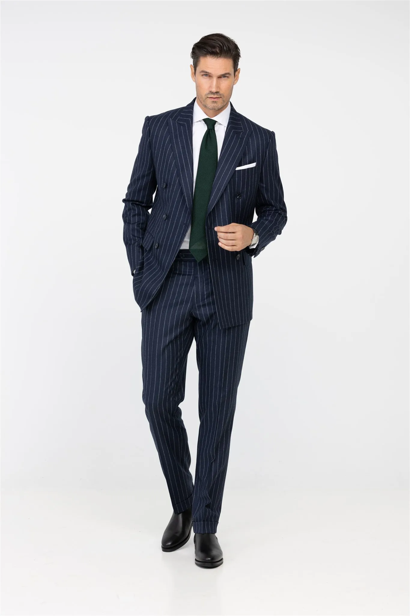 Découvrez le complet croisé à rayures sous toutes ses coutures. La couleur bleue rendra votre ensemble intemporel et élégant. Apportez un style tendance avec ce costume dans votre garde robe pour épater vos collègues et marquer les esprits de vos collaborateurs lors de réunions.