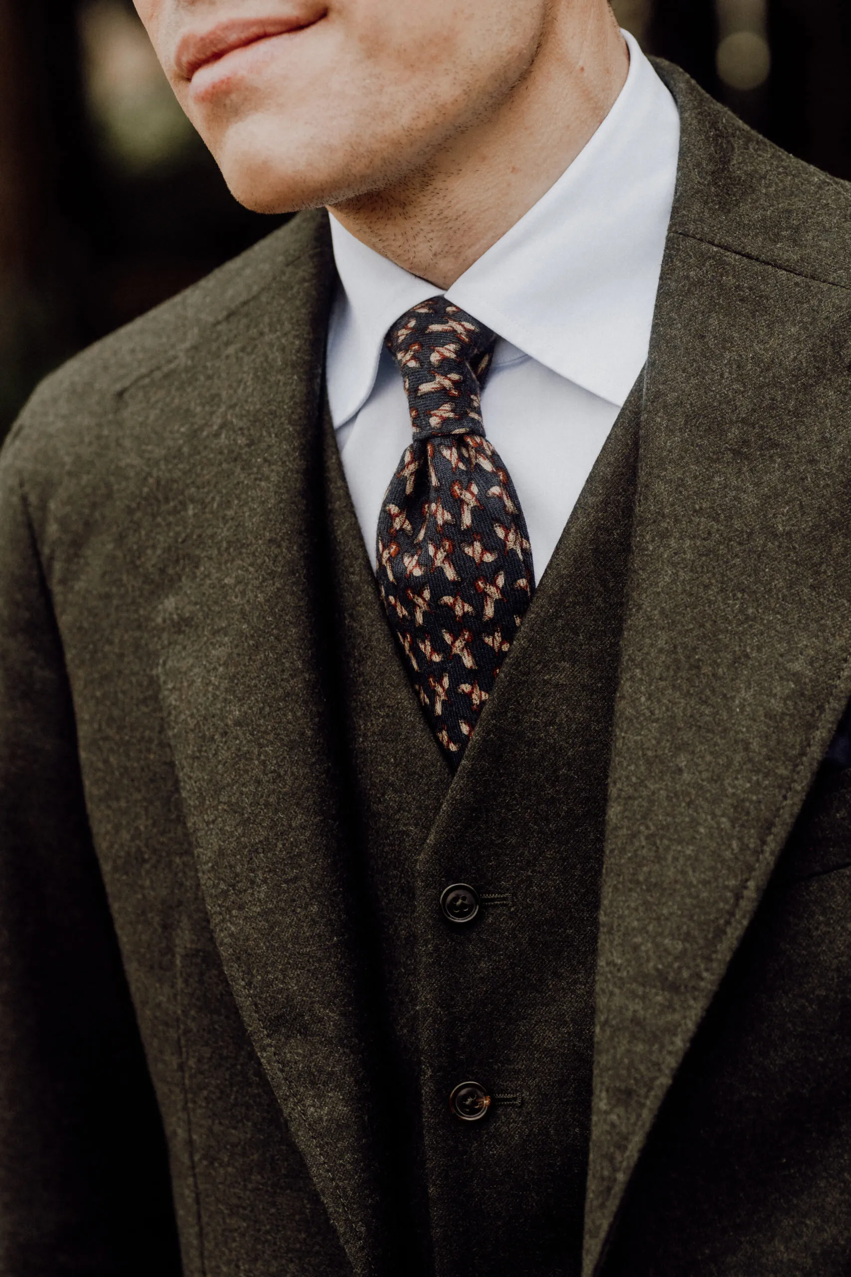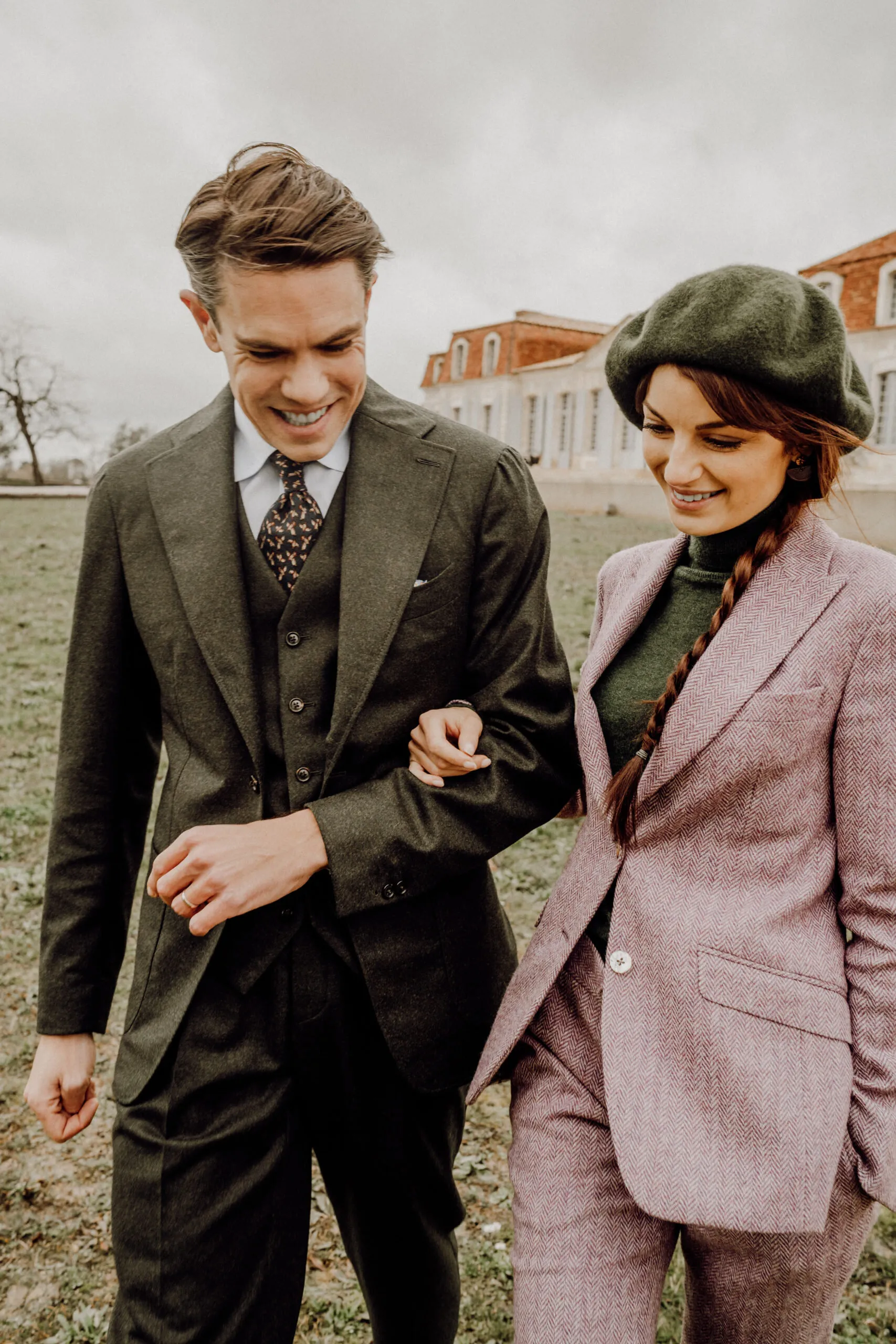 Choisissez une couleur de flanelle qui vous ressemble et adaptée aux couleurs que avec lesquelles vous êtes à l’aise. Les couleurs classiques telles que le gris, le vert foncé ou le marron sont souvent populaires pour les costumes de business ou de tout les jours. En ce qui concerne le style, vous pouvez opter pour un costume trois pièces, un costume à deux boutons ou même un costume croisé en flanelle, selon l’ambiance souhaitée. Ici, c’est un costume 3 pièces que nous vous proposons, idéal pour une tenue habillée.