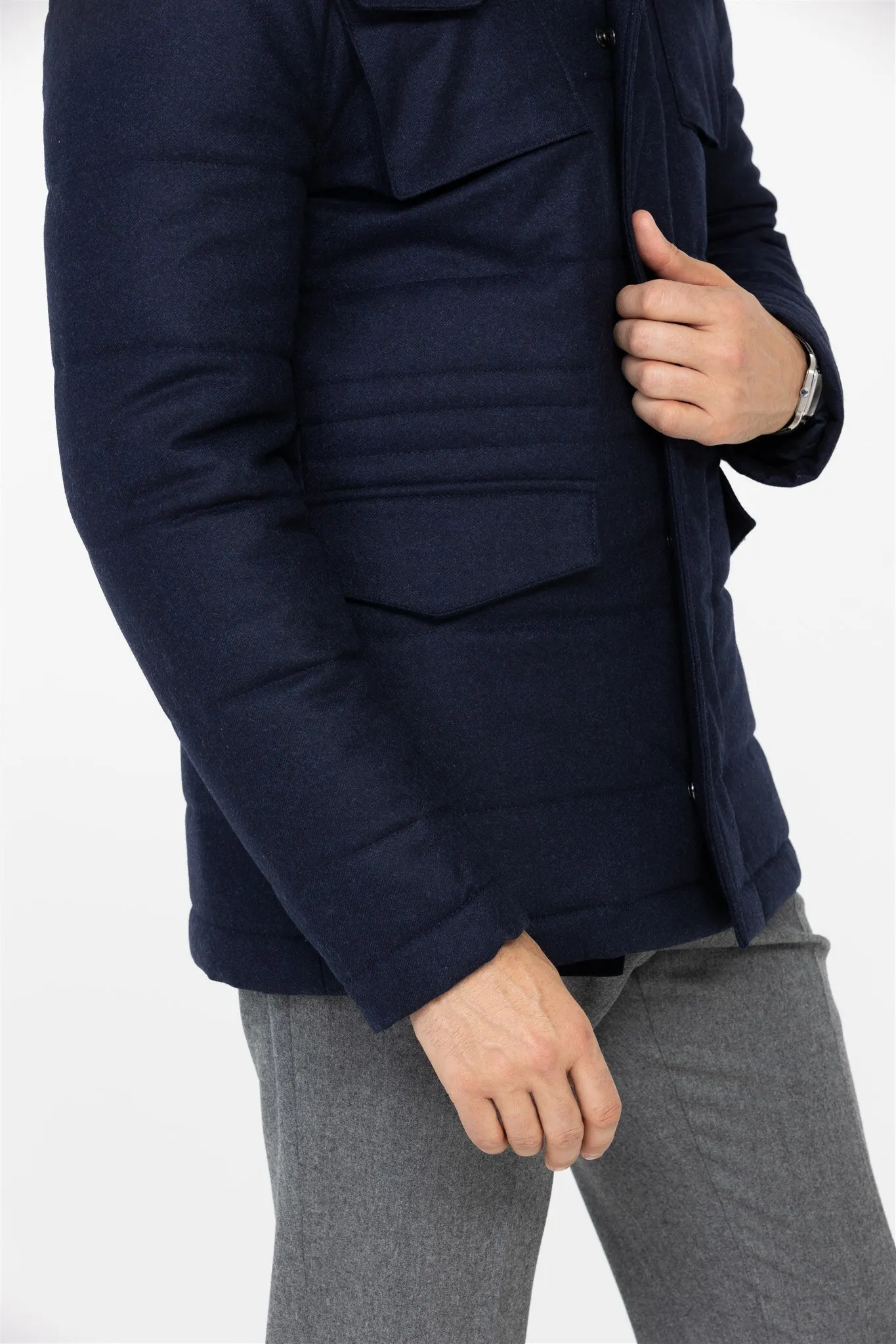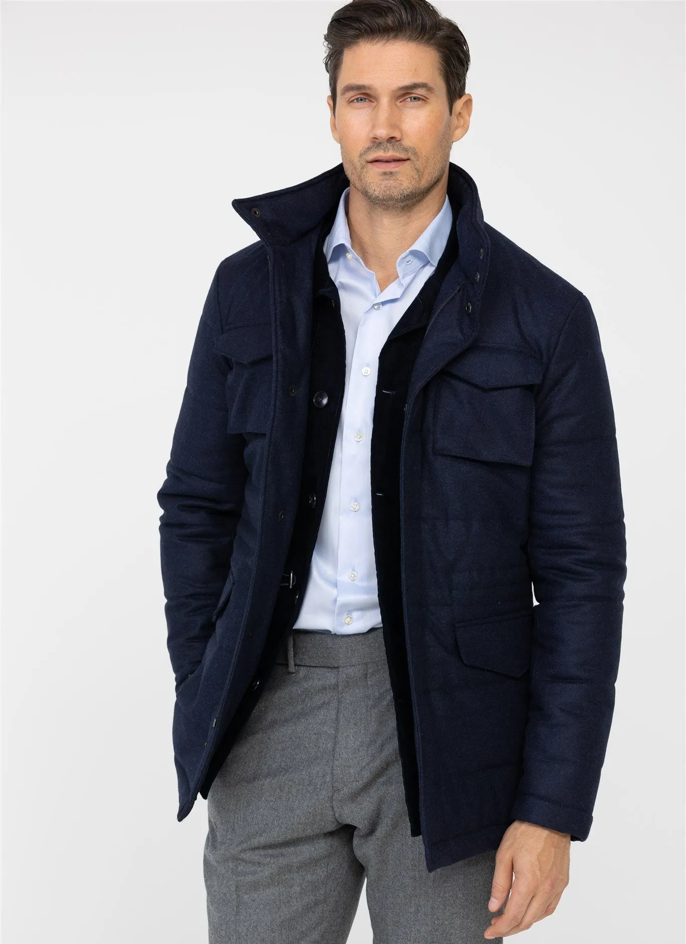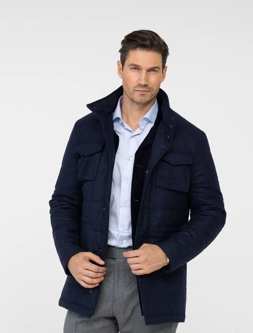 Découvrez notre Field jacket matelassée bleue sur mesure, une pièce tendance de sa garde-robe pour la période fraiche. Dans cette flanelle, vous retrouverez confort et élégance pour vos tenues.