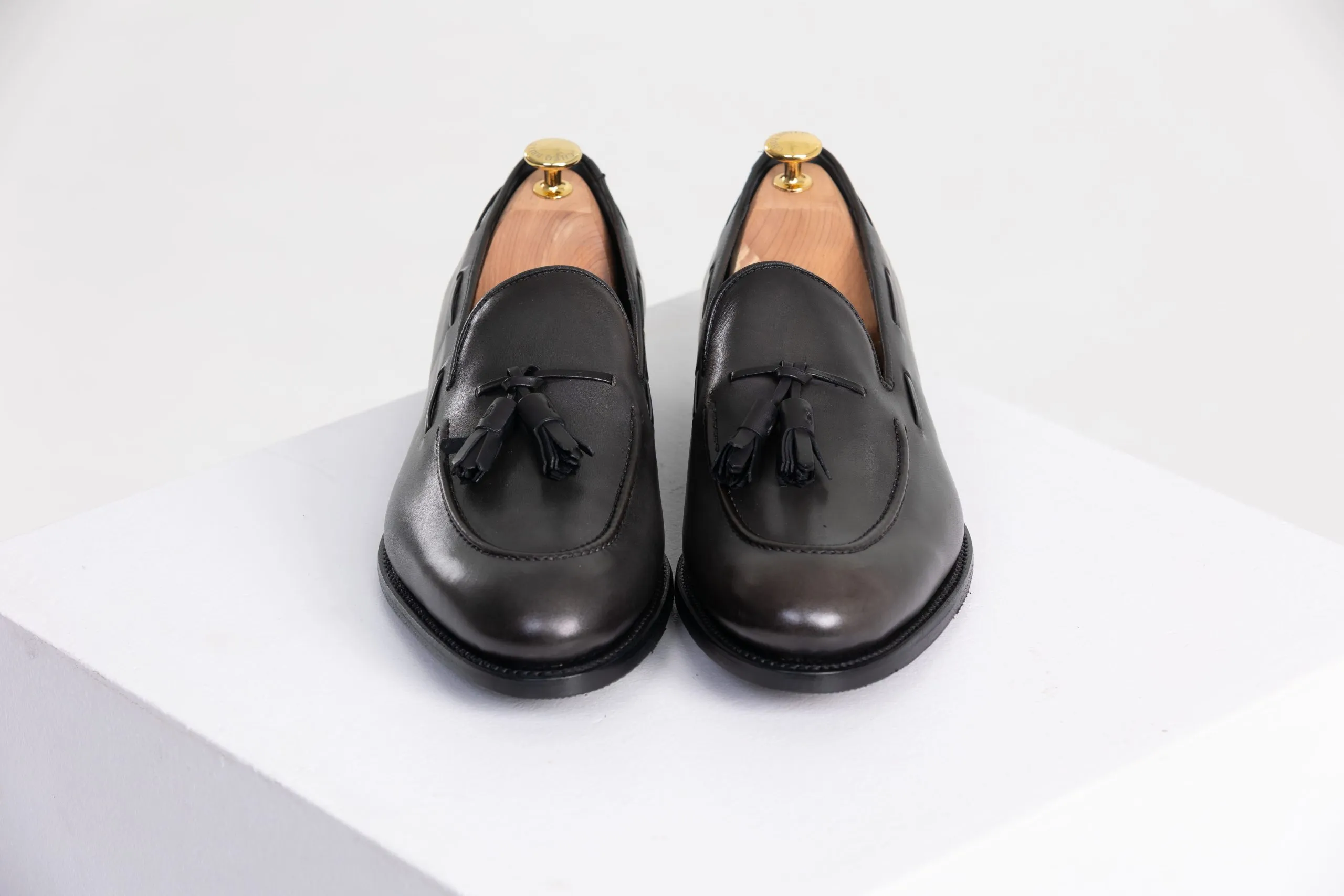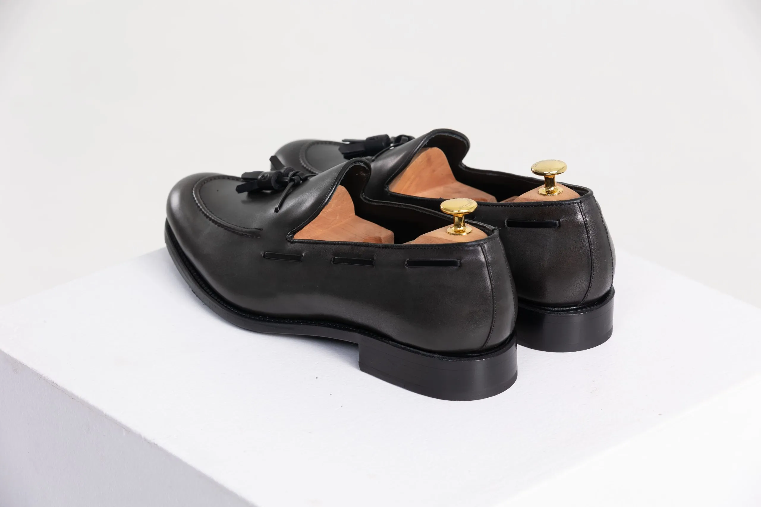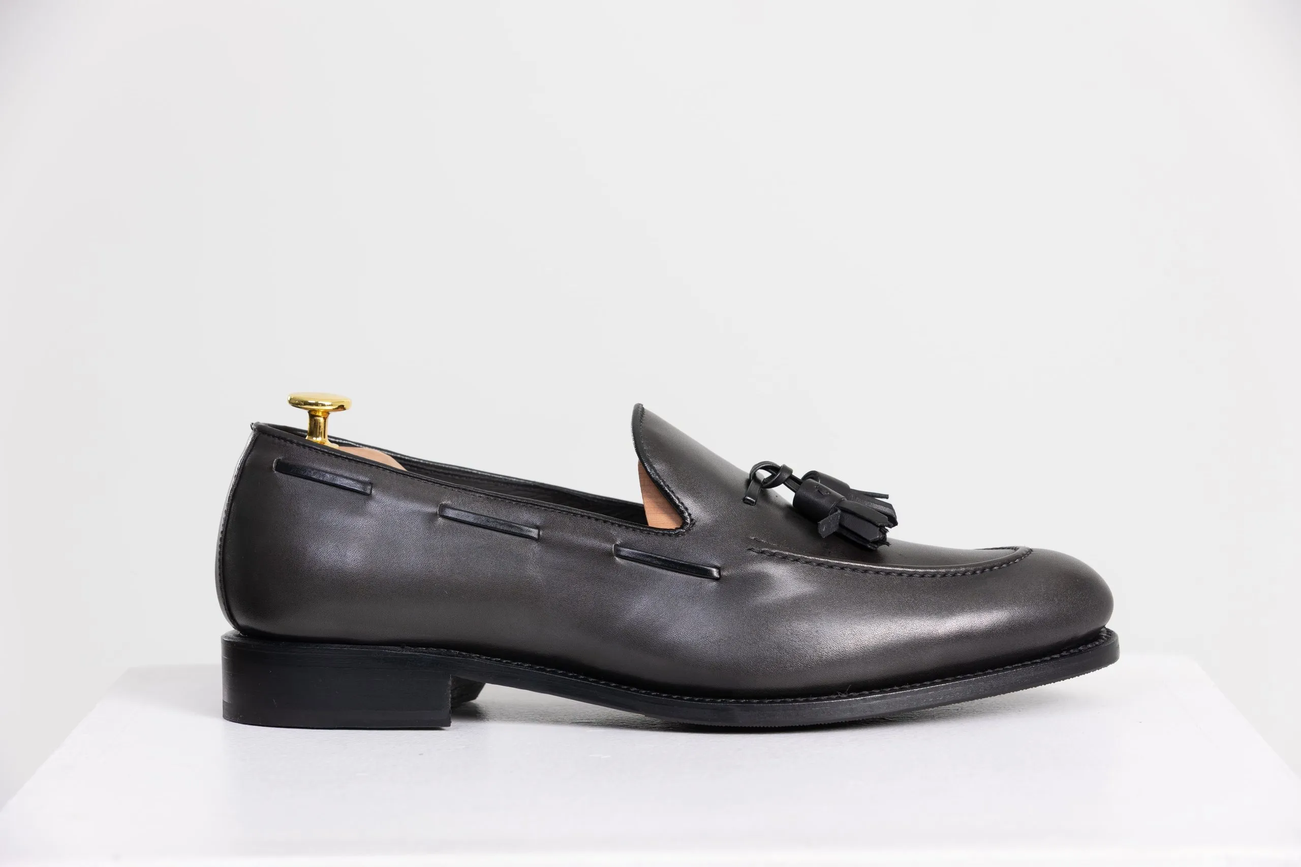 Les mocassins à pampilles gris se distinguent par leur cuir burnished unique, leur montage cousu Goodyear garantissant durabilité et confort, et leur design inspiré des modèles britanniques. Chaque détail a été pensé pour offrir une chaussure d’exception, à la fois élégante et décontractée.