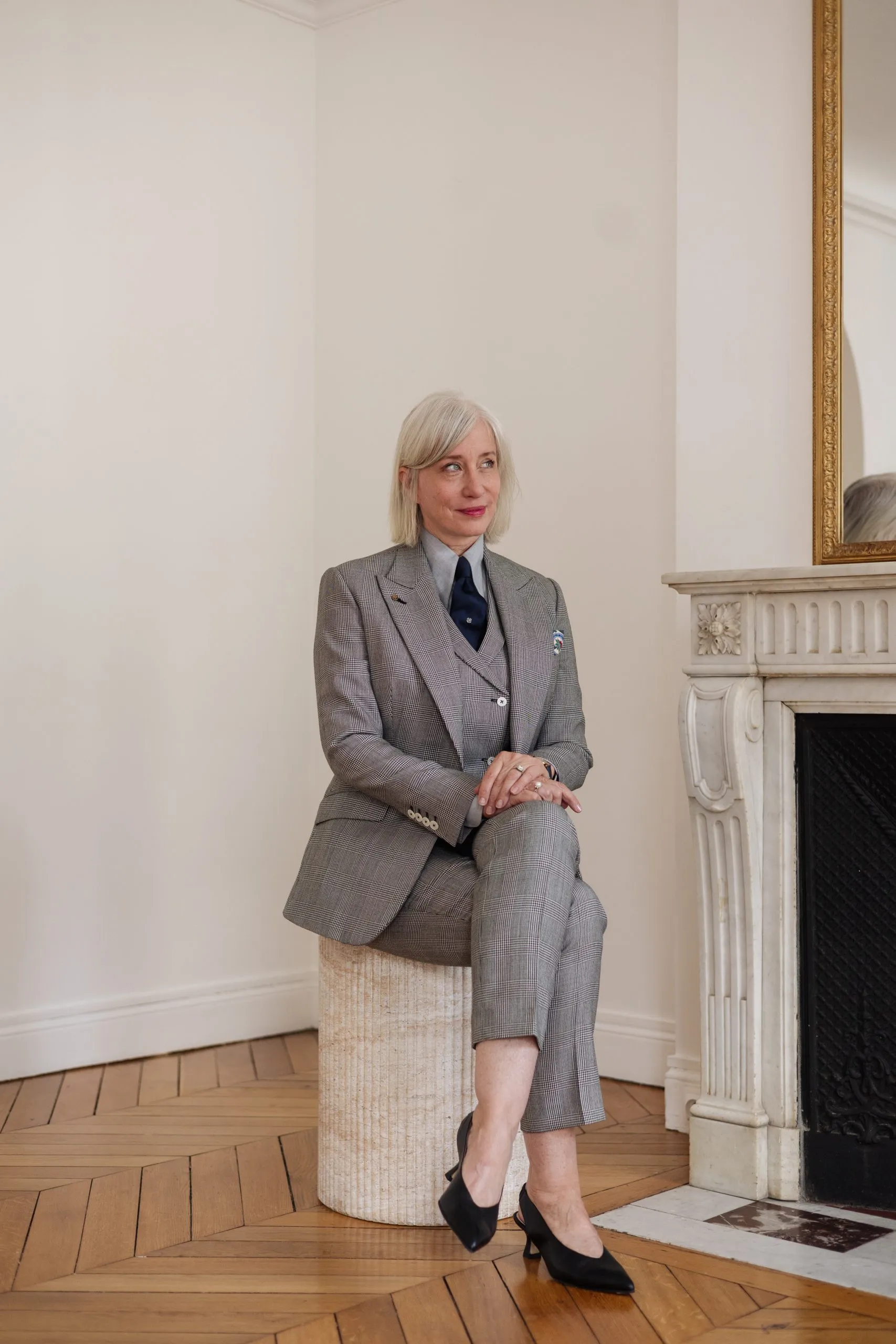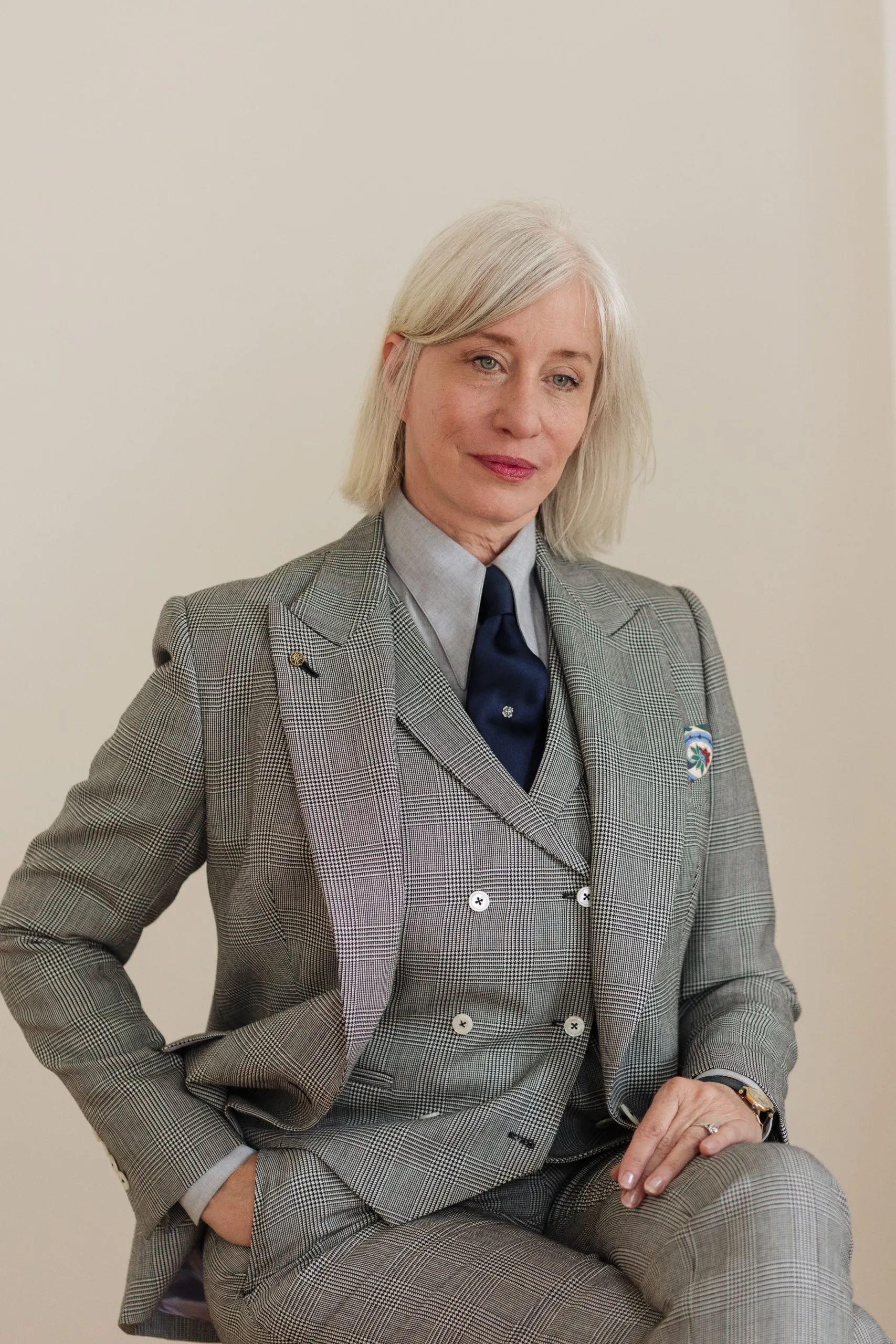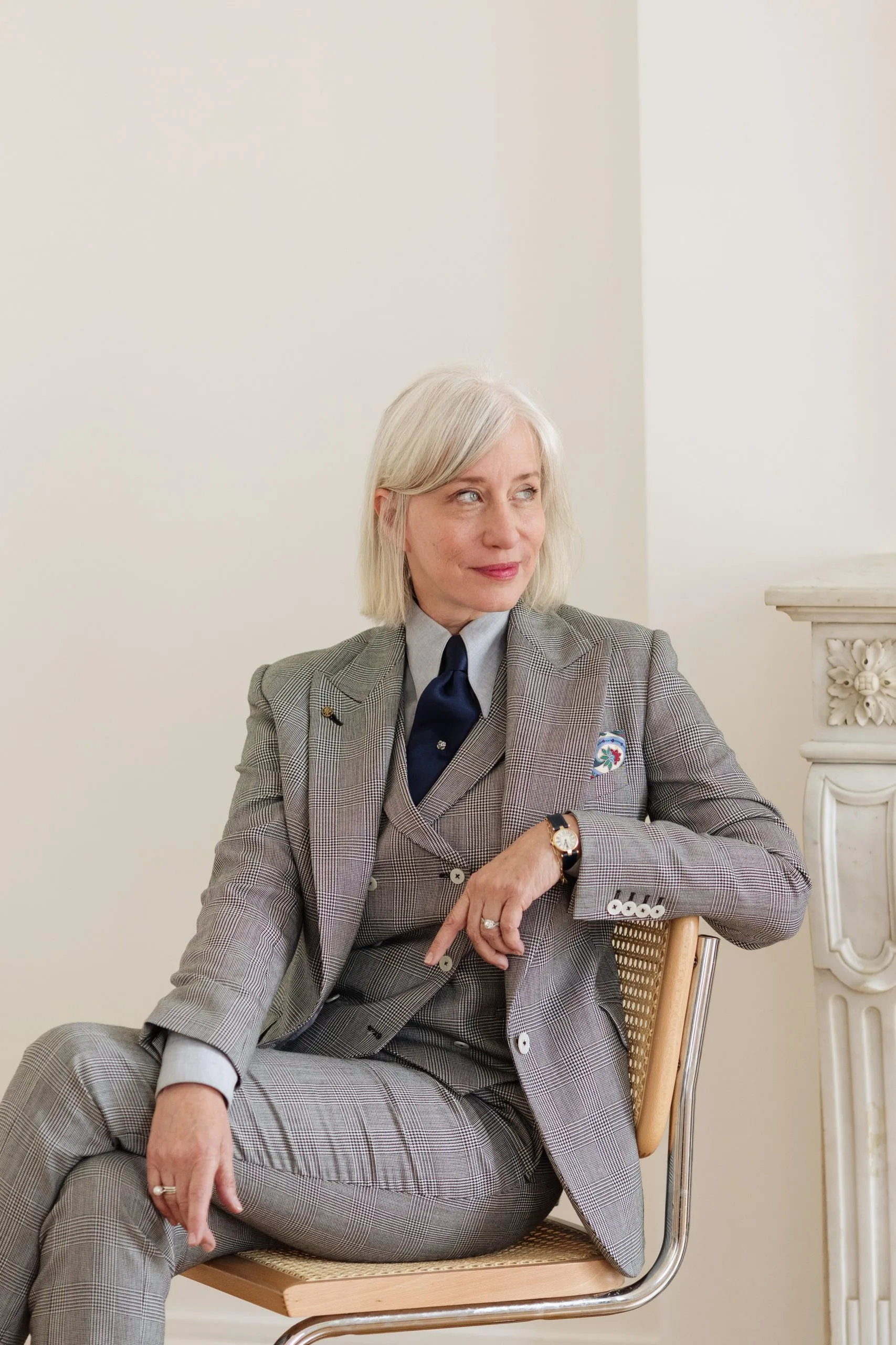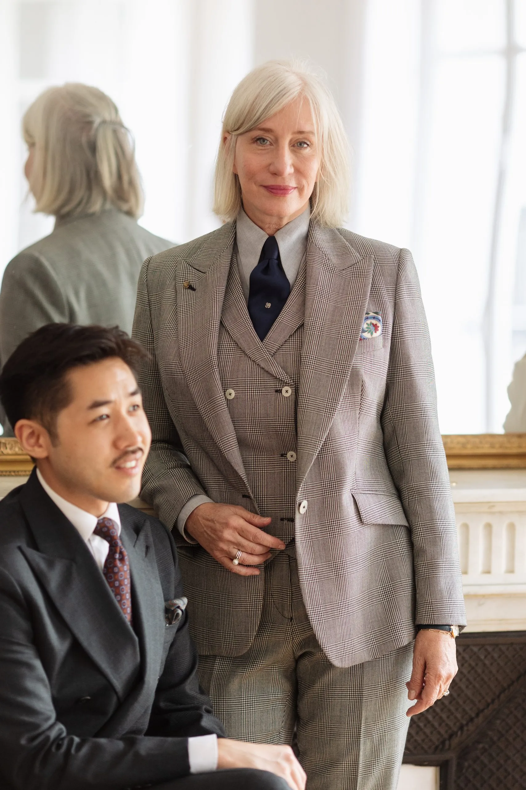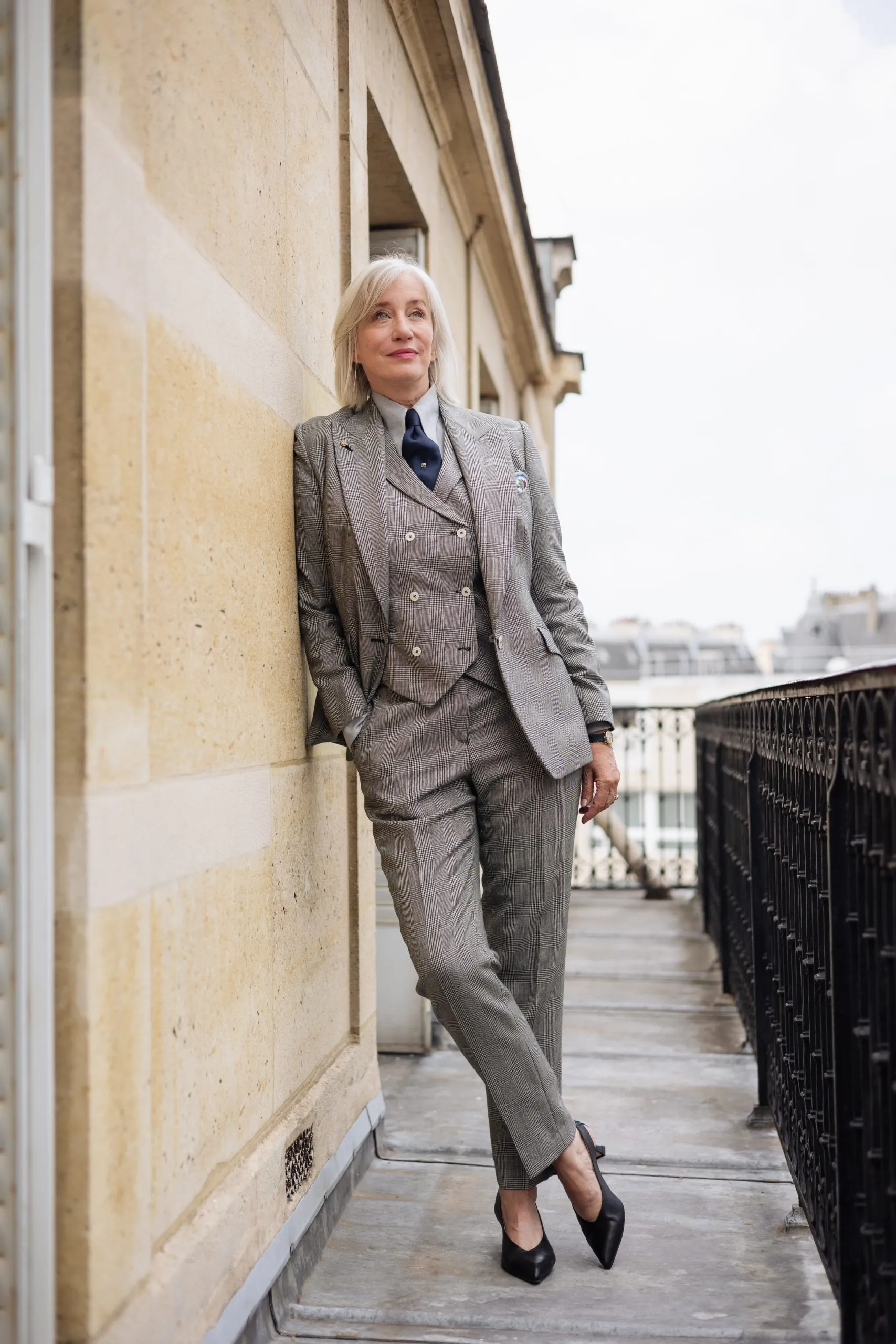 Le gilet croisé à six boutons avec revers à cran aigu complète parfaitement la tenue.