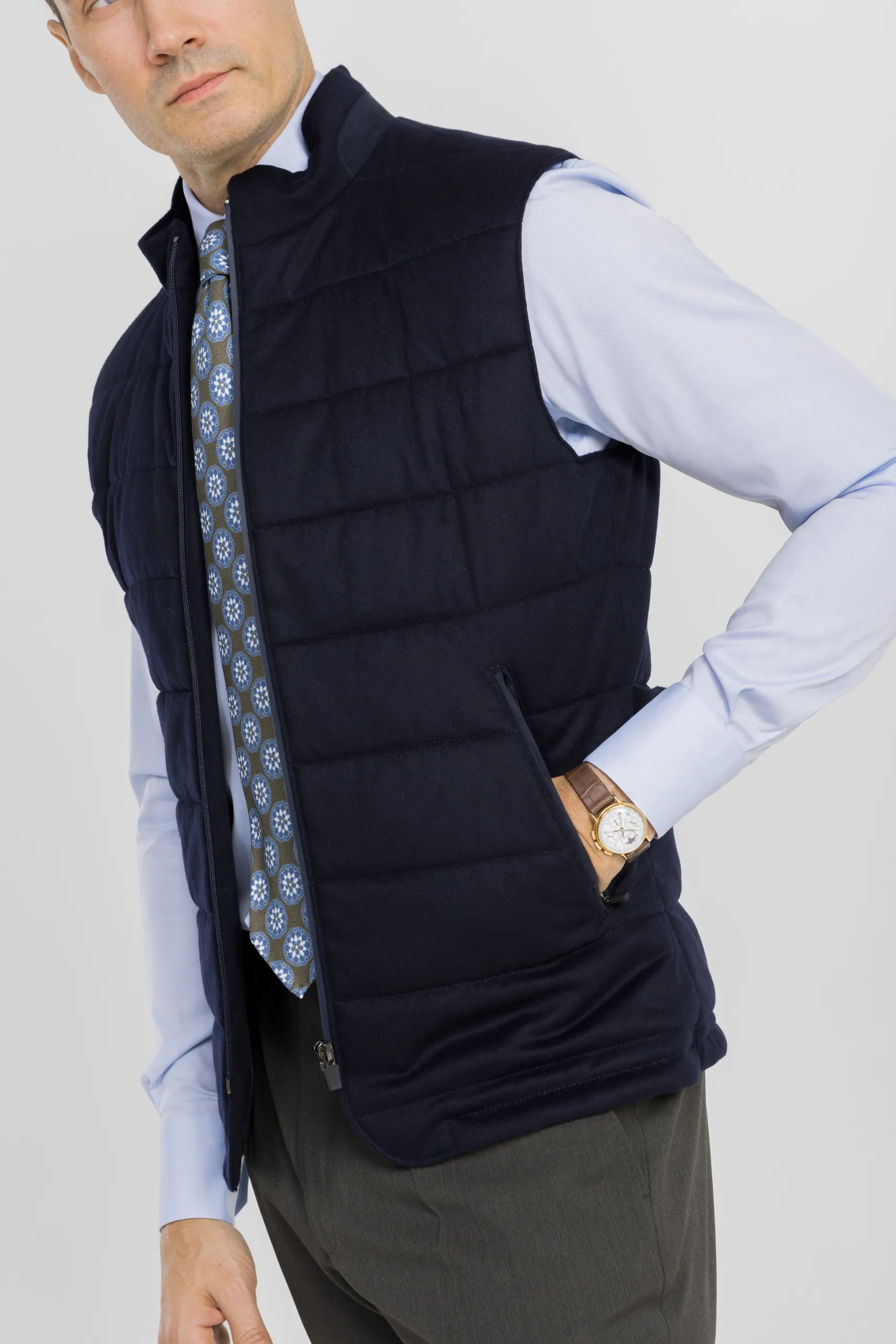 GILET MATELASSÉ BLEU CACHEMIRE PIACENZA