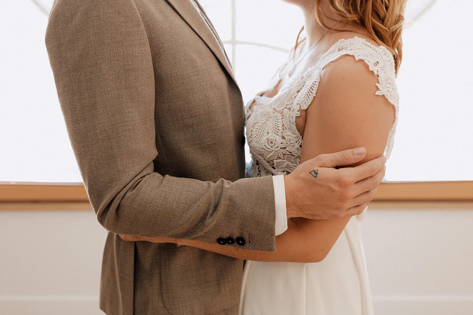 Le greige est une belle couleur, dans la tendance actuelle. Si vous souhaitez vous éloigner des couleurs traditionnelles telles que le noir, le bleu ou le gris, mais que vous n’êtes pas à l’aise avec les couleurs plus vives, cette couleur est une bonne option. Il ajoute de la personnalité et de la créativité à votre tenue tout en restant classique et élégant. C’est un choix idéal pour les mariés qui veulent apporter une touche de modernité à leur look.
