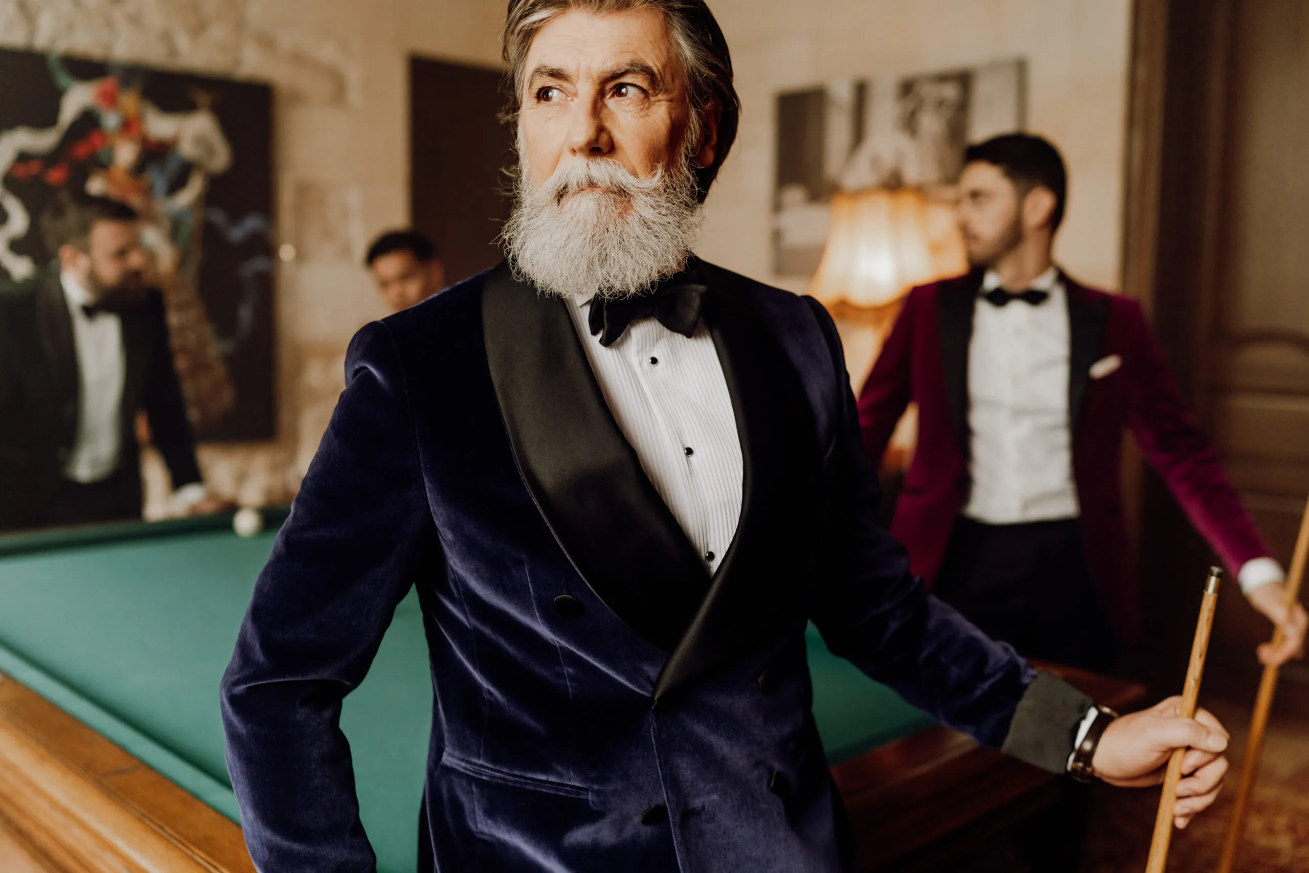 Un smoking en velours est un choix audacieux et élégant pour un mariage. Il ajoute ainsi une touche de luxe et de sophistication à votre apparence, vous faisant briller davantage le jour de votre mariage.