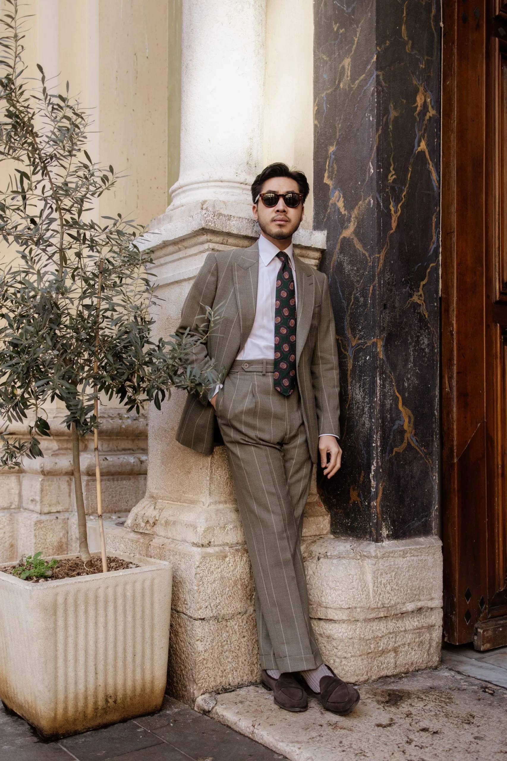 Les poches passepoilées droites et la poche poitrine barchetta renforcent le style sobre et élégant, tandis que la boutonnière à la milanaise et les boutons beige apportent une finition soignée.